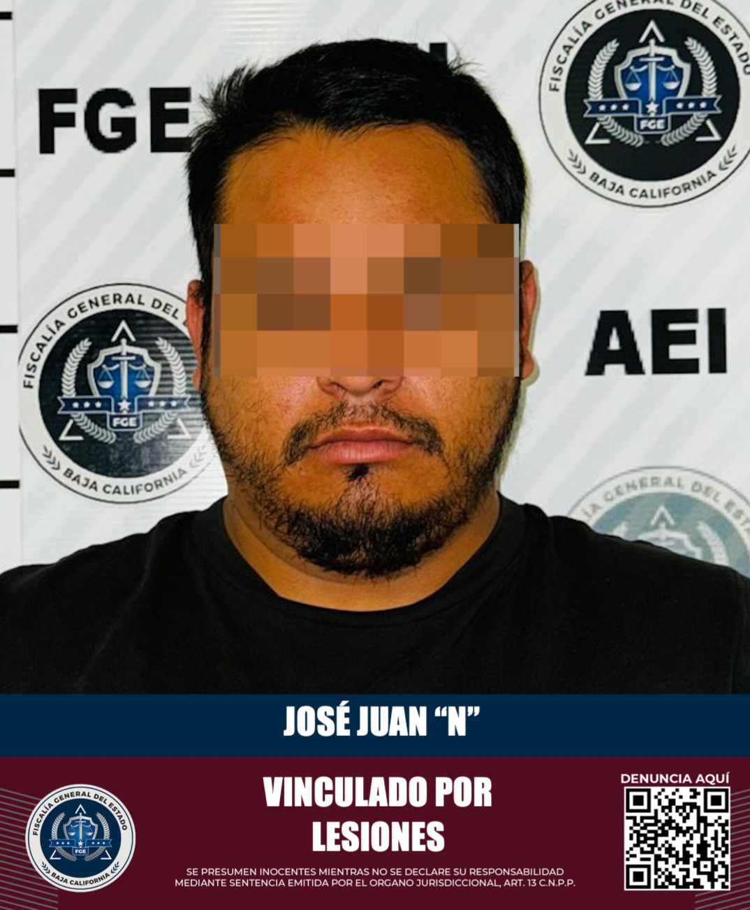 SAN QUINTÍN, B.C. La Fiscalía Regional de San Quintín obtuvo la vinculación a proceso de José Juan “N”, quien fue detenido tras una orden de aprehensión por su presunta participación en el delito de lesiones.