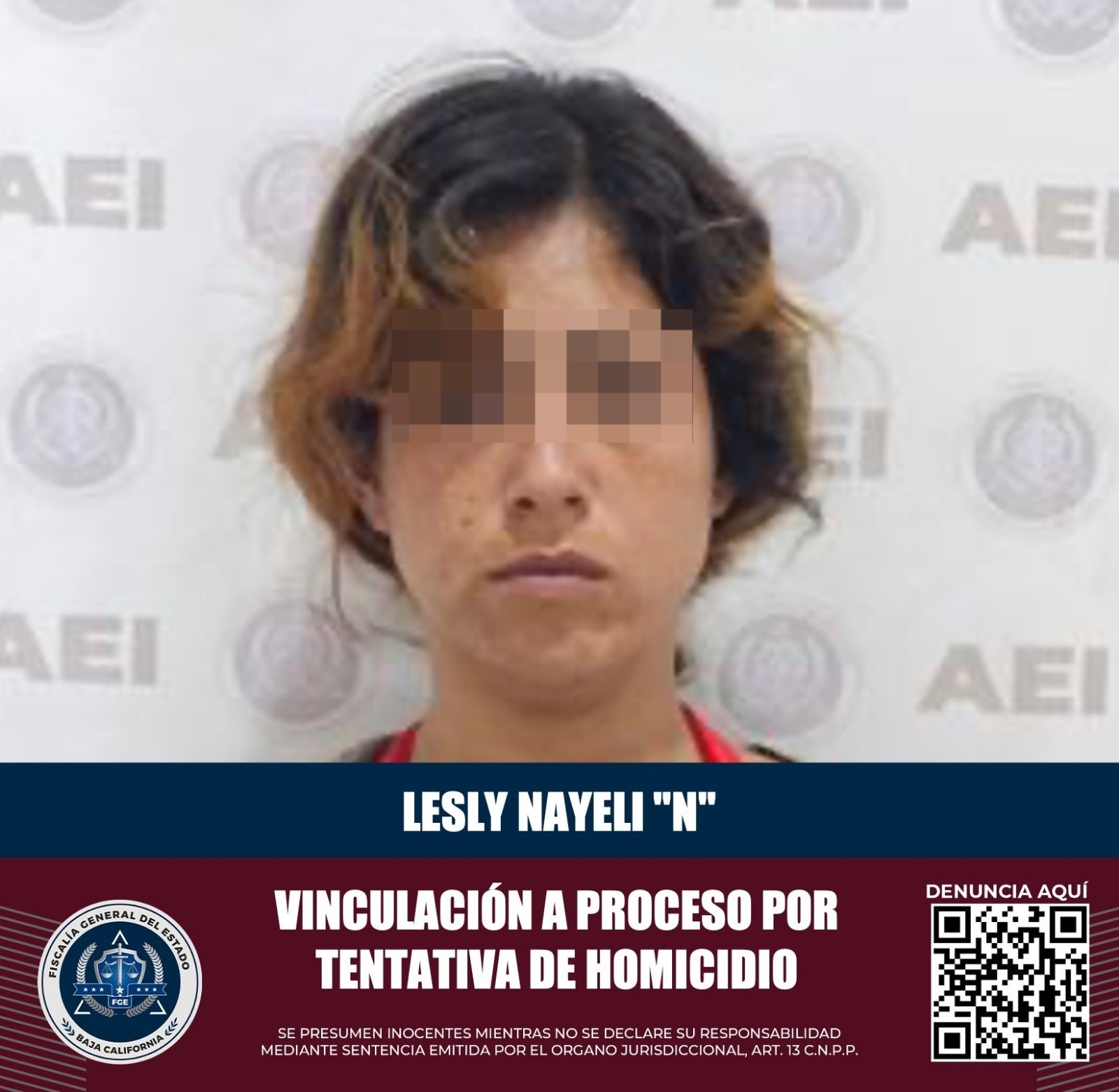El 2 de agosto de 2024, se ejecutó una orden de aprehensión contra Leslie Nayeli “N”, quien quedó bajo la custodia del Juez de Control del Poder Judicial del Estado de Baja California.