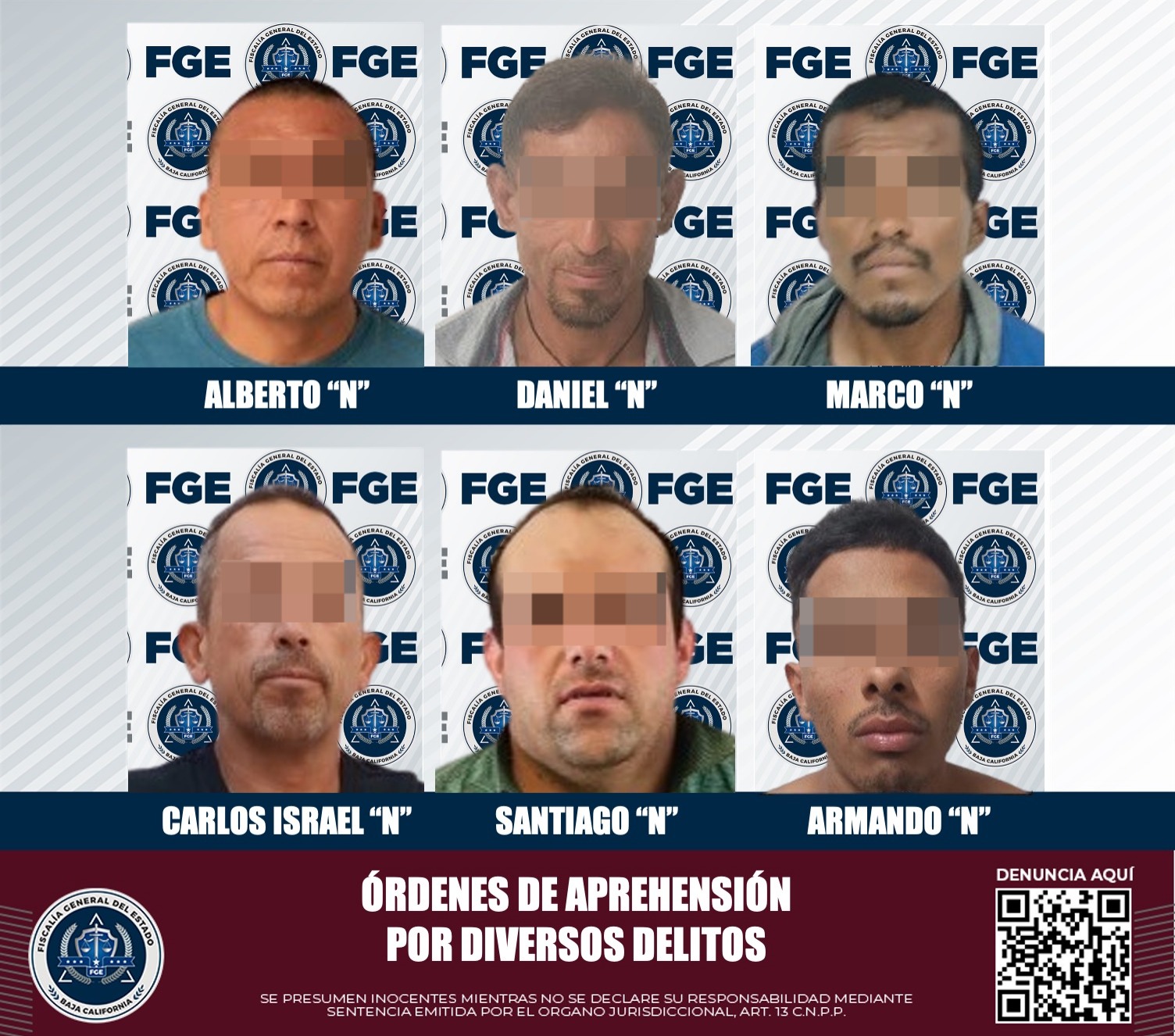 TECATE, B.C. En el marco de un operativo estratégico diseñado para localizar a individuos que se encuentran prófugos de la justicia, agentes de la Agencia Estatal de Investigación de la Fiscalía General del Estado en Tecate ejecutaron seis órdenes de aprehensión relacionadas con diversos delitos.