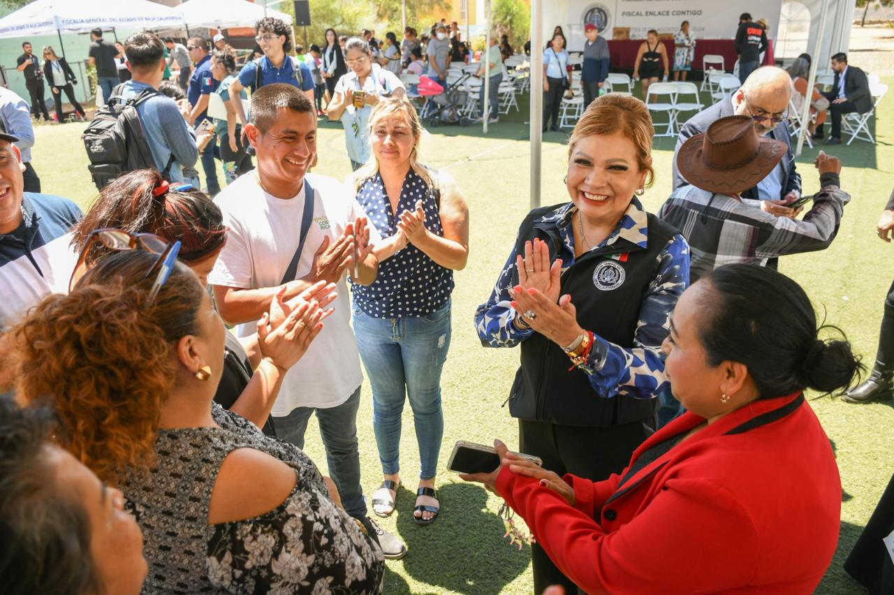 TIJUANA, B.C. Con el objetivo de acercar el esquema de justicia a las comunidades de la entidad y buscar soluciones inmediatas a las problemáticas de la población, la Fiscal General del Estado, Ma. Elena Andrade Ramírez, lideró un evento de acercamiento en la colonia Hacienda Las Delicias lll, este martes 13 de agosto.