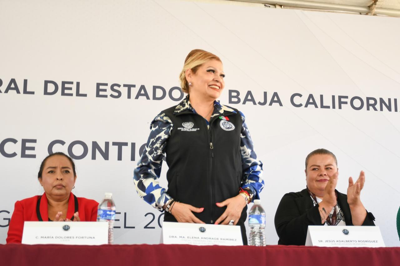En el evento, la fiscal Ma. Elena Andrade Ramírez, estuvo acompañada por el Coordinador de Gabinete, Juan Carlos Buenrostro Molina; el Fiscal Regional de Tijuana, Rubén Alfredo Maximiliano Ramos Jiménez; la Directora Estatal de Atención Ciudadana y Justicia Alternativa Penal, Sonia López Urrea; el Agente del Ministerio Público, Sergio López Castellanos; la líder de la Colonia Delicias lll, María Dolores Fortuna; y el Subdelegado Municipal Jesús Adalberto Rodríguez Quezada.