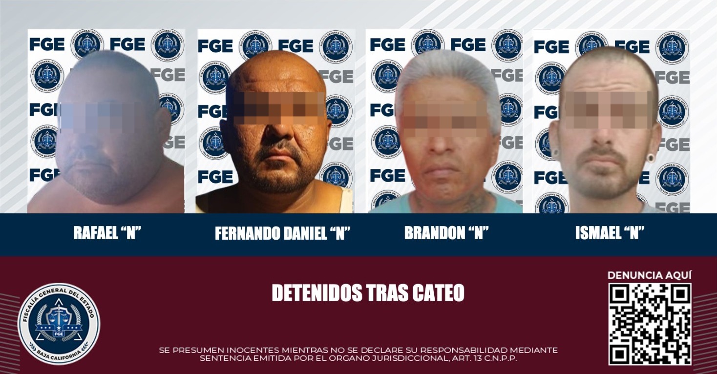 MEXICALI, B.C. Con la finalidad de asegurar a personas señaladas como distribuidores de droga en “tienditas”, elementos de la Fiscalía General del Estado (FGE), cumplimentaron tres órdenes de cateo en donde detuvieron a cuatro presuntos narcomenudistas en posesión de enervantes.