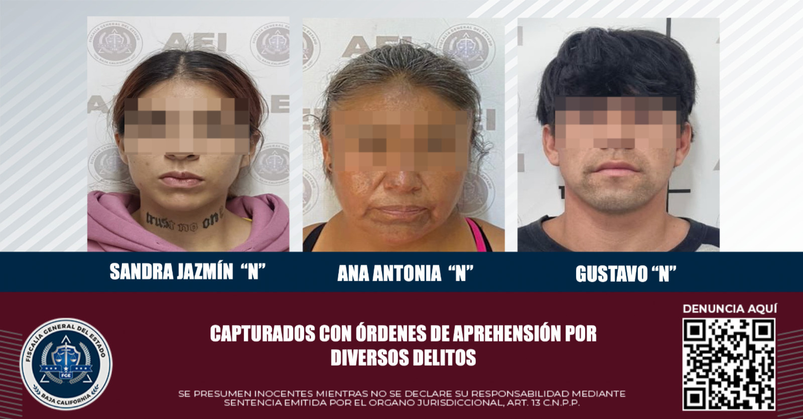 ENSENADA, B.C. Elementos de la Agencia Estatal de Investigación, de la Fiscalía General del Estado, capturaron a dos mujeres y un hombre en cumplimiento de órdenes de aprehensión.
