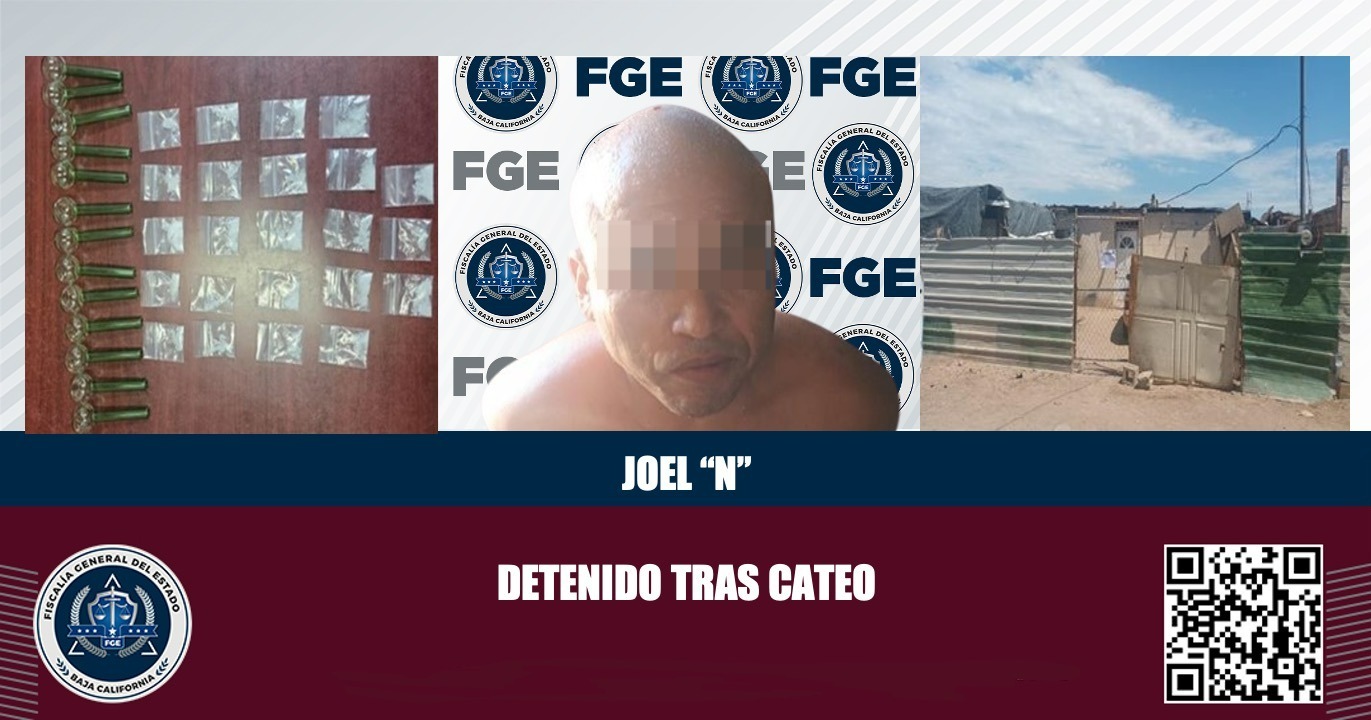MEXICALI, B.C. Elementos de la Fiscalía General del Estado (FGE), ejecutaron un cateo logrando el aseguramiento de un presunto vendedor de estupefacientes y decomisaron varias dosis de droga.