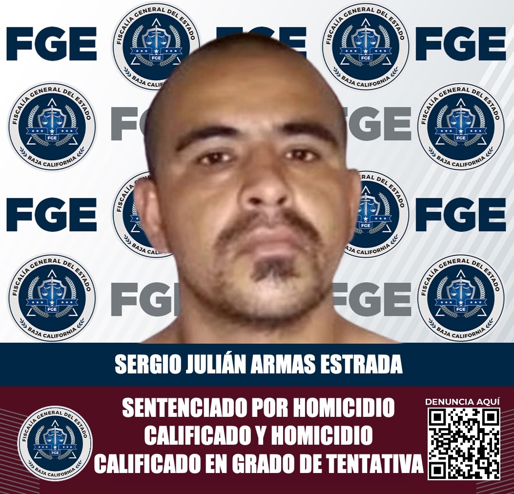 MEXICALI, B.C. Con base en las evidencias integradas en la carpeta de investigación y en la presentación de argumentos, la Fiscalía General del Estado (FGE), logró una sentencia condenatoria en contra de Sergio Julián Armas Estrada, acusado por los delitos de homicidio calificado por ventaja y homicidio calificado por ventaja en grado de tentativa.