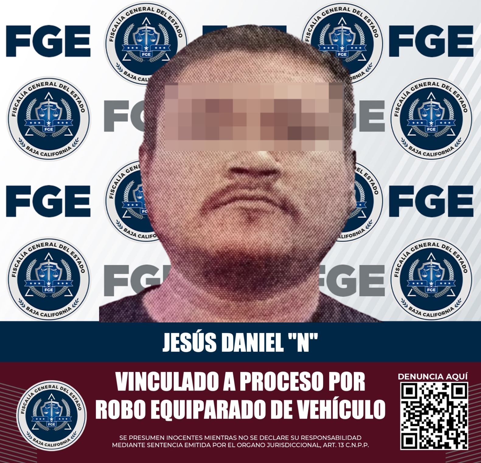 Según información proporcionada por la Fiscalía Regional de Tecate, Jesús Daniel “N” fue vinculado a proceso por utilizar un vehículo con placas pertenecientes a un automóvil robado el 12 de febrero de 2018.
