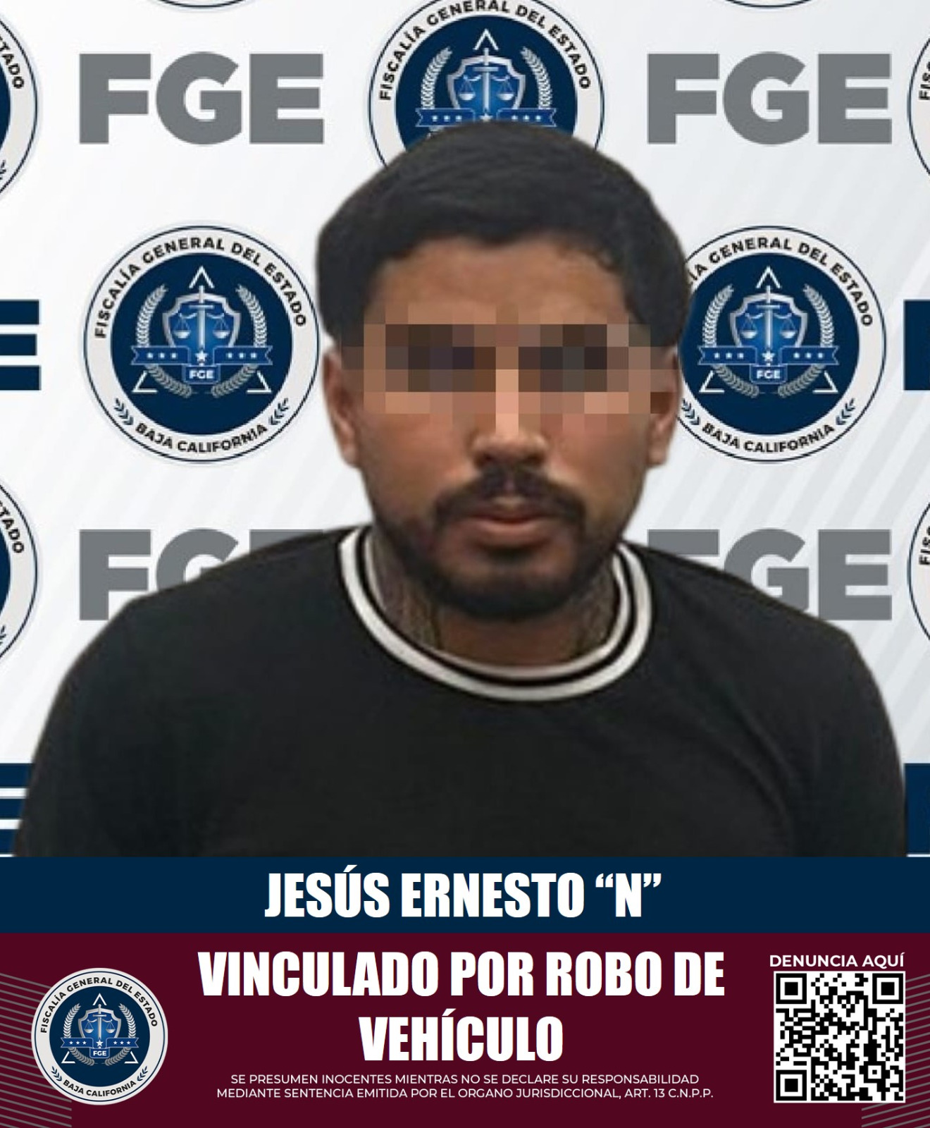 MEXICALI, B.C. La Fiscalía Regional de Mexicali obtuvo la vinculación a proceso de un sujeto por el delito de robo de vehículo en la modalidad de uso de placas de vehículo con reporte de robo.
