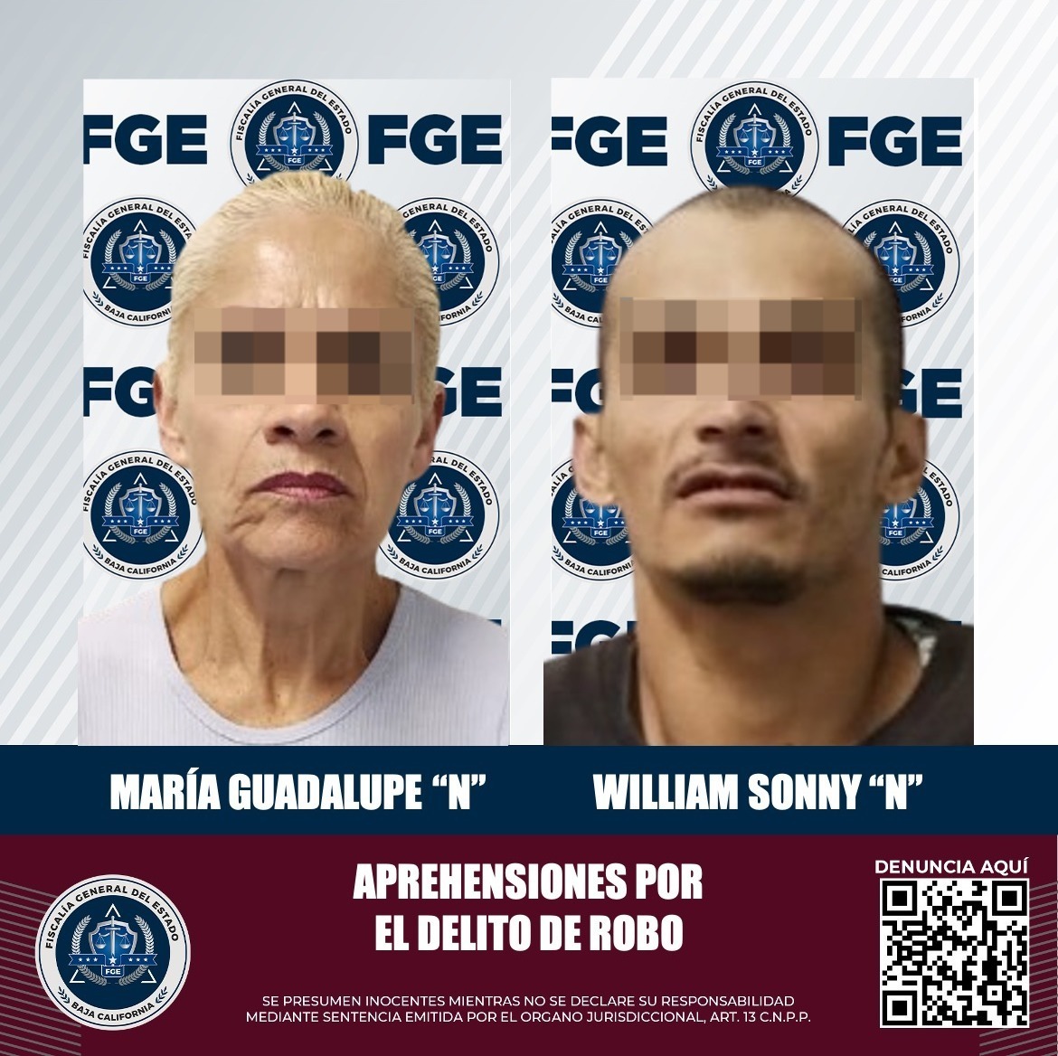 TIJUANA, B.C. La Fiscalía General del Estado, a través de su cuerpo policiaco, la Agencia Estatal de Investigación, ha cumplimentado dos órdenes de aprehensión contra un hombre y una mujer por su presunta participación en delitos de robo.