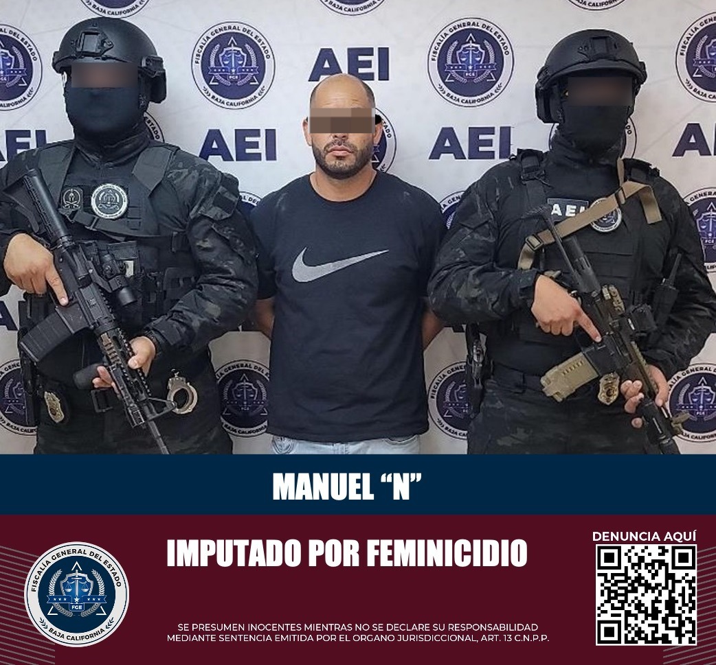 TIJUANA, B.C. La Fiscalía General del Estado de Baja California, bajo las directrices de su titular, Ma. Elena Andrade Ramírez, y comprometida con la investigación y el esclarecimiento de los hechos, informa que ha capturado y formulado imputación contra Manuel "N", presunto autor intelectual del feminicidio de Gabriela, enfermera del Hospital Materno Infantil de Tijuana.