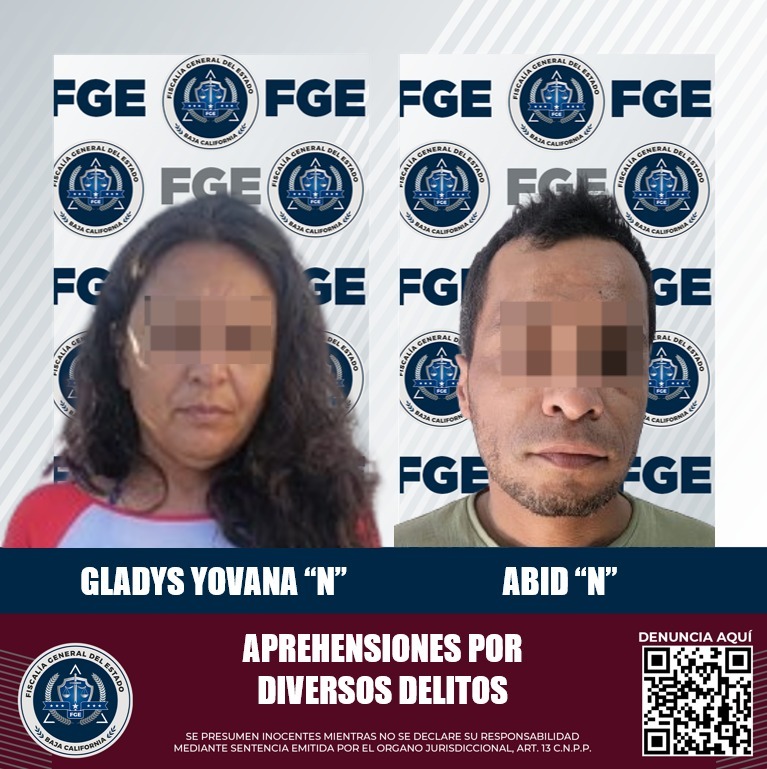 Detiene la Fiscalía General de Baja California a una mujer y un hombre por diversos delitos