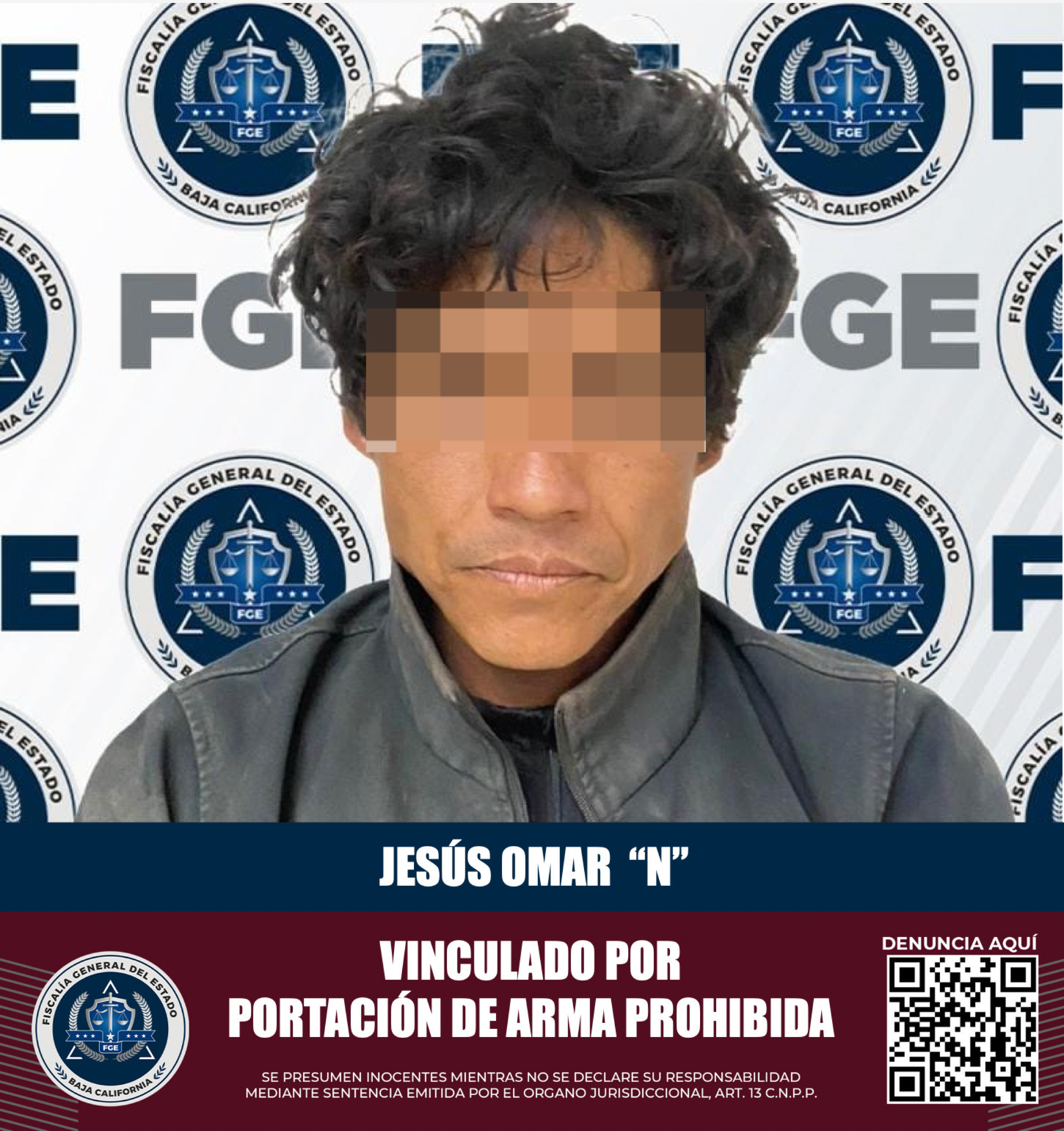 SAN QUINTÍN, B.C. La Fiscalía Regional de San Quintín logró la vinculación a proceso y medida cautelar de prisión preventiva en contra de Jesús Omar “N”, por el delito de portación de arma prohibida; fue detenido al portar un machete en la vía pública y agredir a policías municipales.