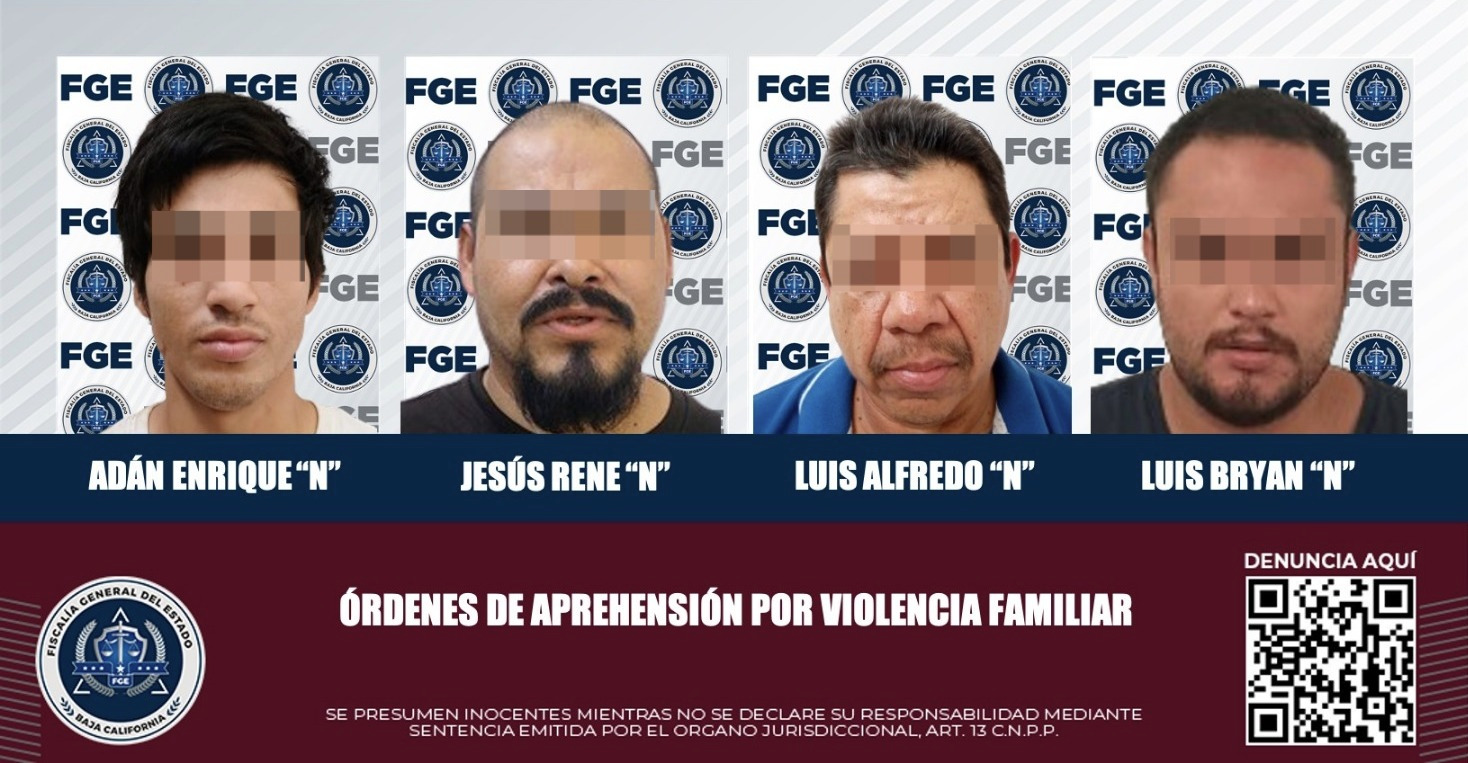 MEXICALI, B.C. Elementos de la Fiscalía Regional de Mexicali lograron el aseguramiento de cuatro sujetos prófugos de la justicia por el delito de violencia familiar.