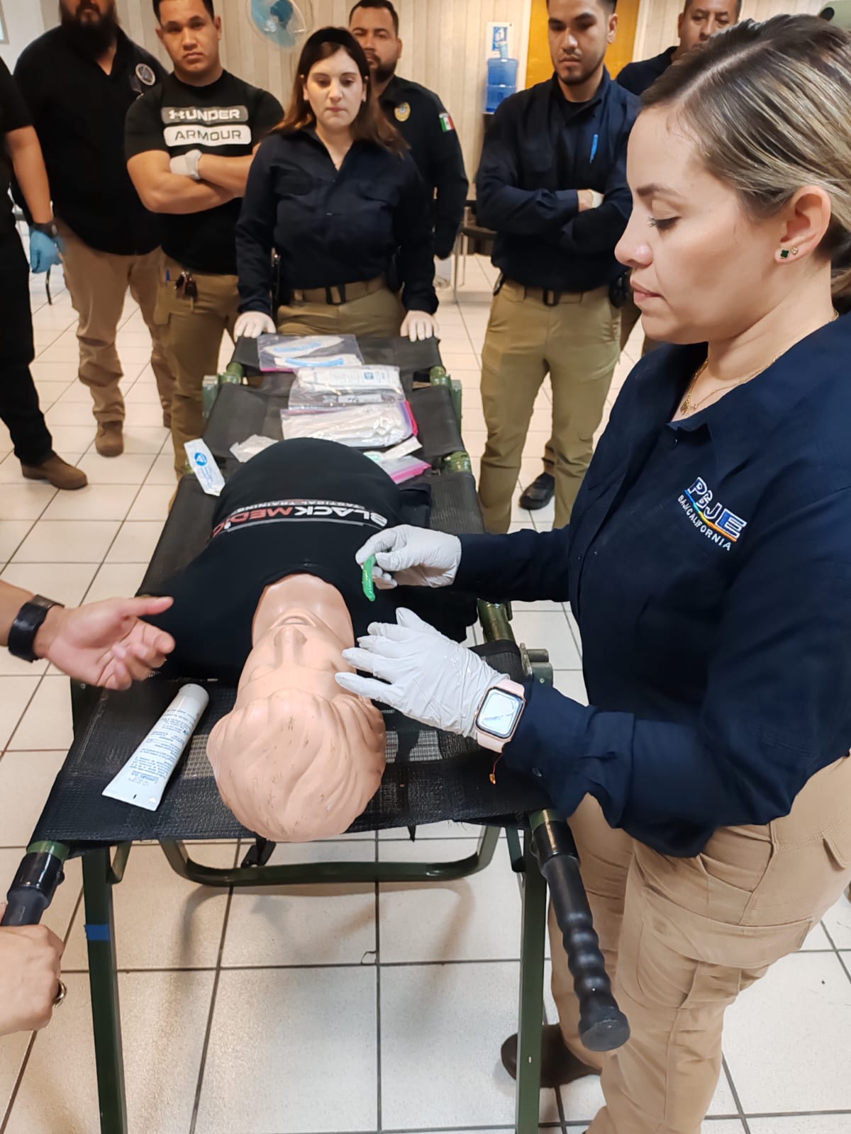 MEXICALI, B.C. Con el objetivo de fortalecer los conocimientos, habilidades y técnicas para el desempeño policial en una situación de riesgo, elementos de la Agencia Estatal de Investigación recibieron el curso denominado "Medicina Táctica".