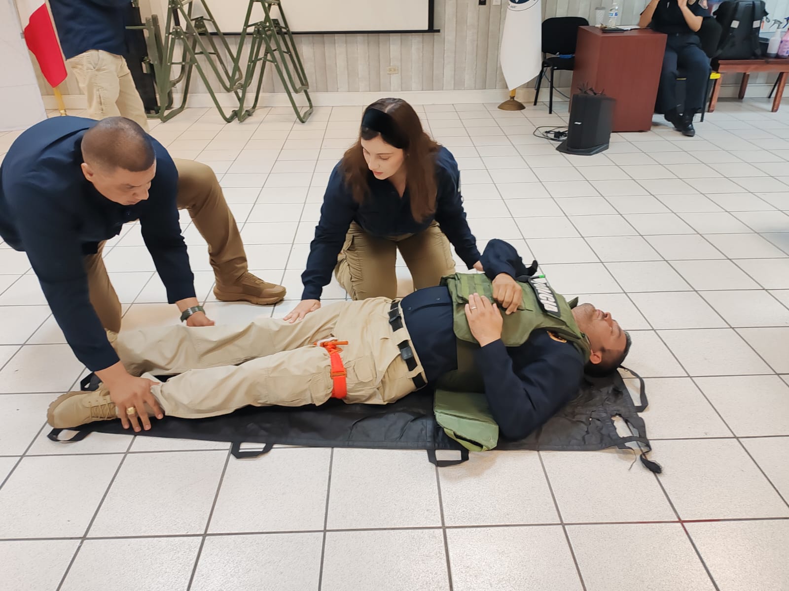 Durante 40 horas, 31 Agentes Estatales de Investigación adquirieron conocimientos teóricos y prácticos a través de los siguientes temas fundamentales de la medicina táctica, anatomía y bio seguridad, primeros auxilios en conflictos armados y situaciones de violencia, abordaje al paciente en medicina táctica, signos vitales y manejo de trauma.