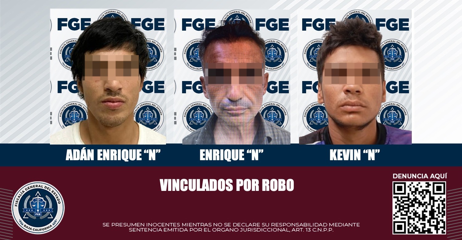 MEXICALI, B.C. La Fiscalía Regional de Mexicali, obtuvo con base en los elementos de prueba aportados por la Unidades de Investigación con Detenidos Poniente y Robos Poniente, la vinculación a proceso de tres acusados de robos con violencia.