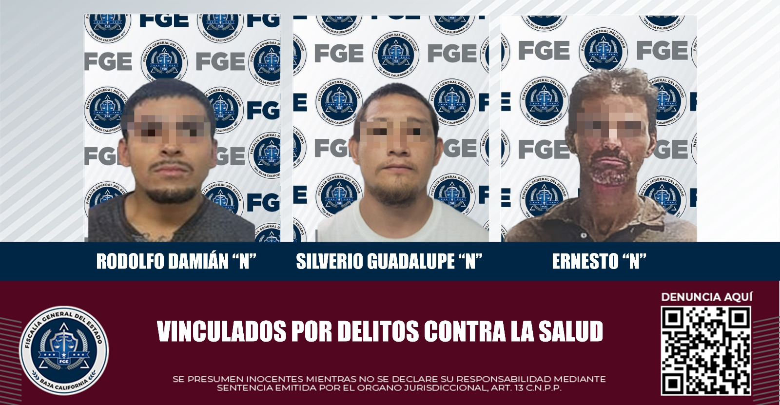 MEXICALI, B.C. La Fiscalía General del Estado, a través de la Fiscalía Especializada en Narcomenudeo, obtuvo la vinculación a proceso de tres sujetos por delitos contra la salud, en audiencias celebradas por separado.