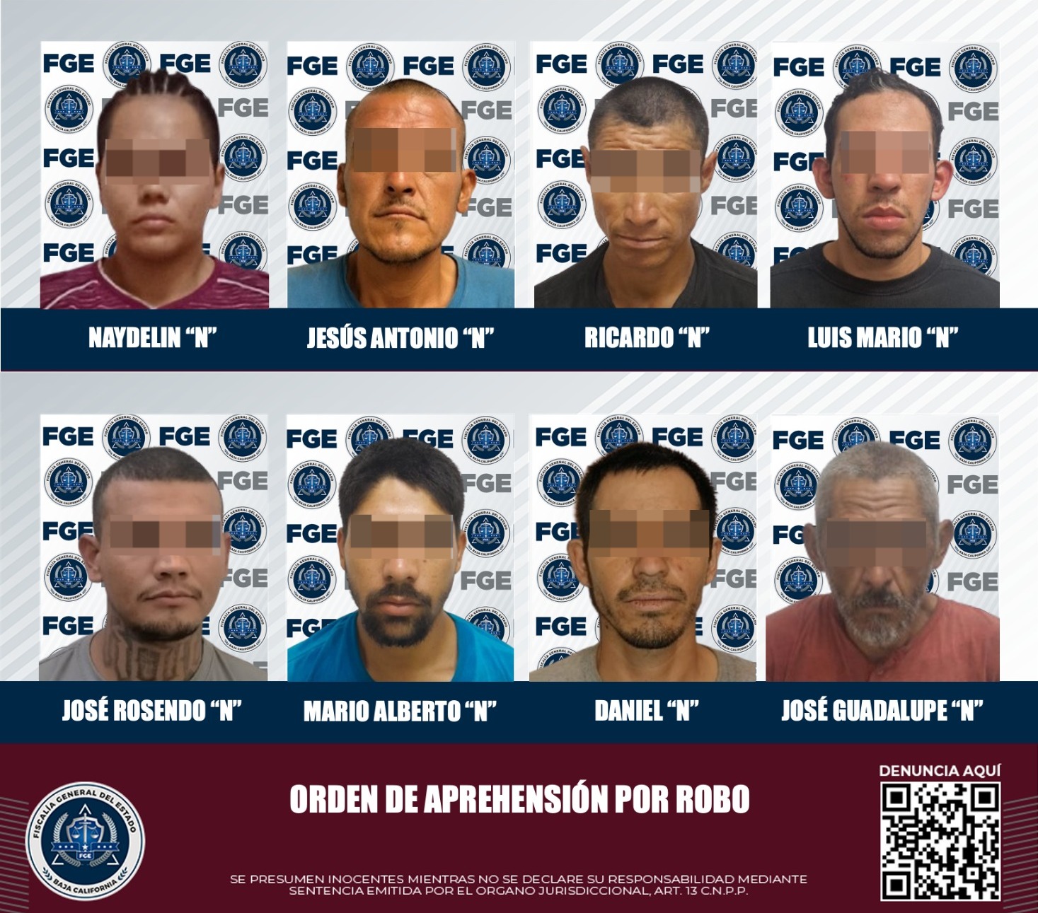 MEXICALI, B.C. Como resultado de un operativo implementado por elementos de la Agencia Estatal de Investigación (AEI), ocho personas que eran buscadas por contar con orden de aprehensión por el delito de robo en sus diferentes modalidades fueron aseguradas.