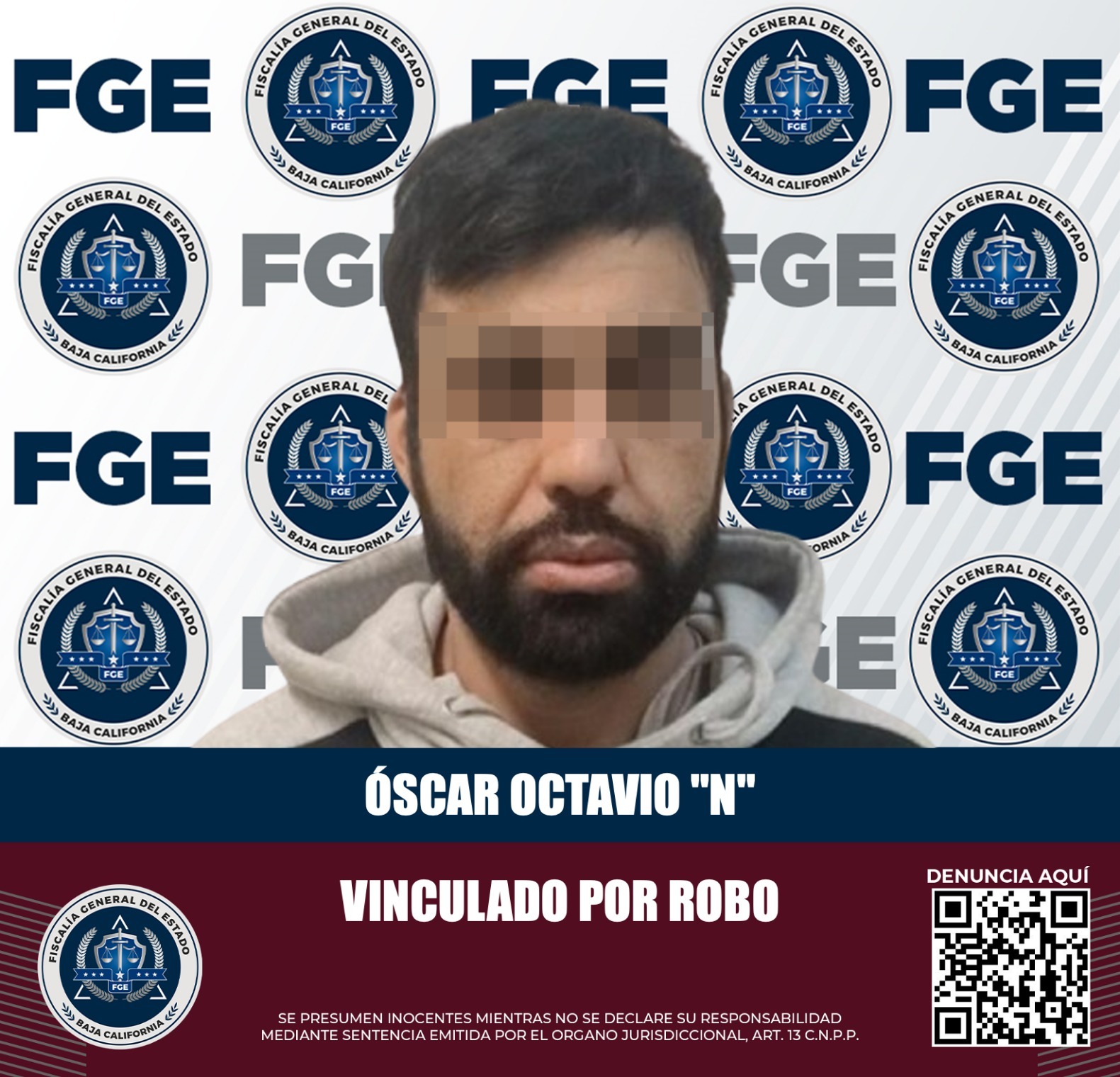 TIJUANA, B.C. La Fiscalía Regional de Tijuana, obtuvo la vinculación a proceso de un sujeto relacionado con el delito de robo con violencia.