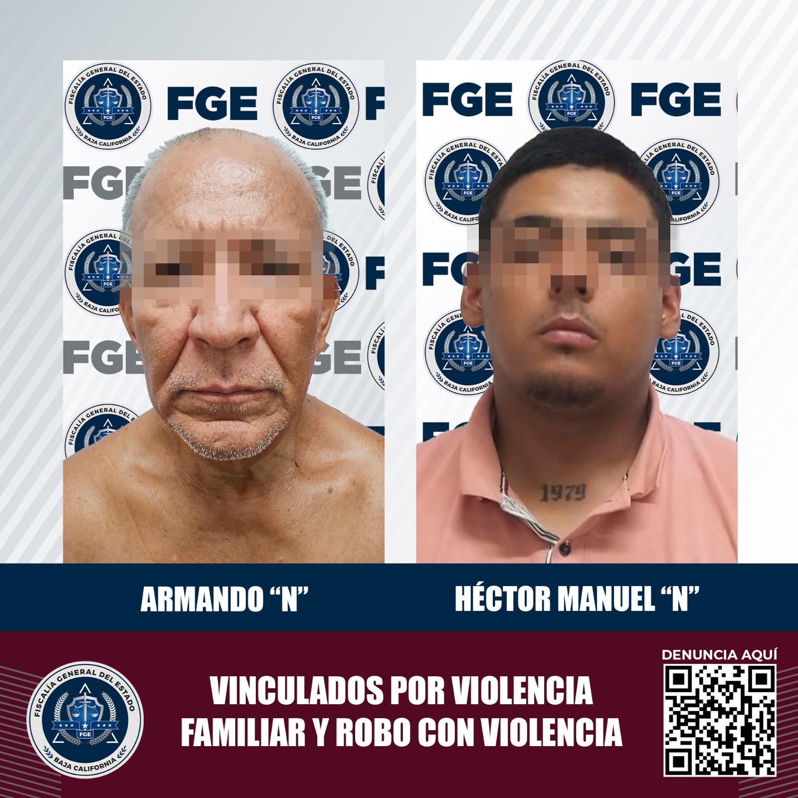 MEXICALI B.C. La Fiscalía Regional de Mexicali, logró con base a los elementos de prueba y argumentos presentados por la Unidad de Investigación Foránea de Guadalupe Victoria, la vinculación de dos hombres relacionados en los delitos violencia familiar y robo con violencia.