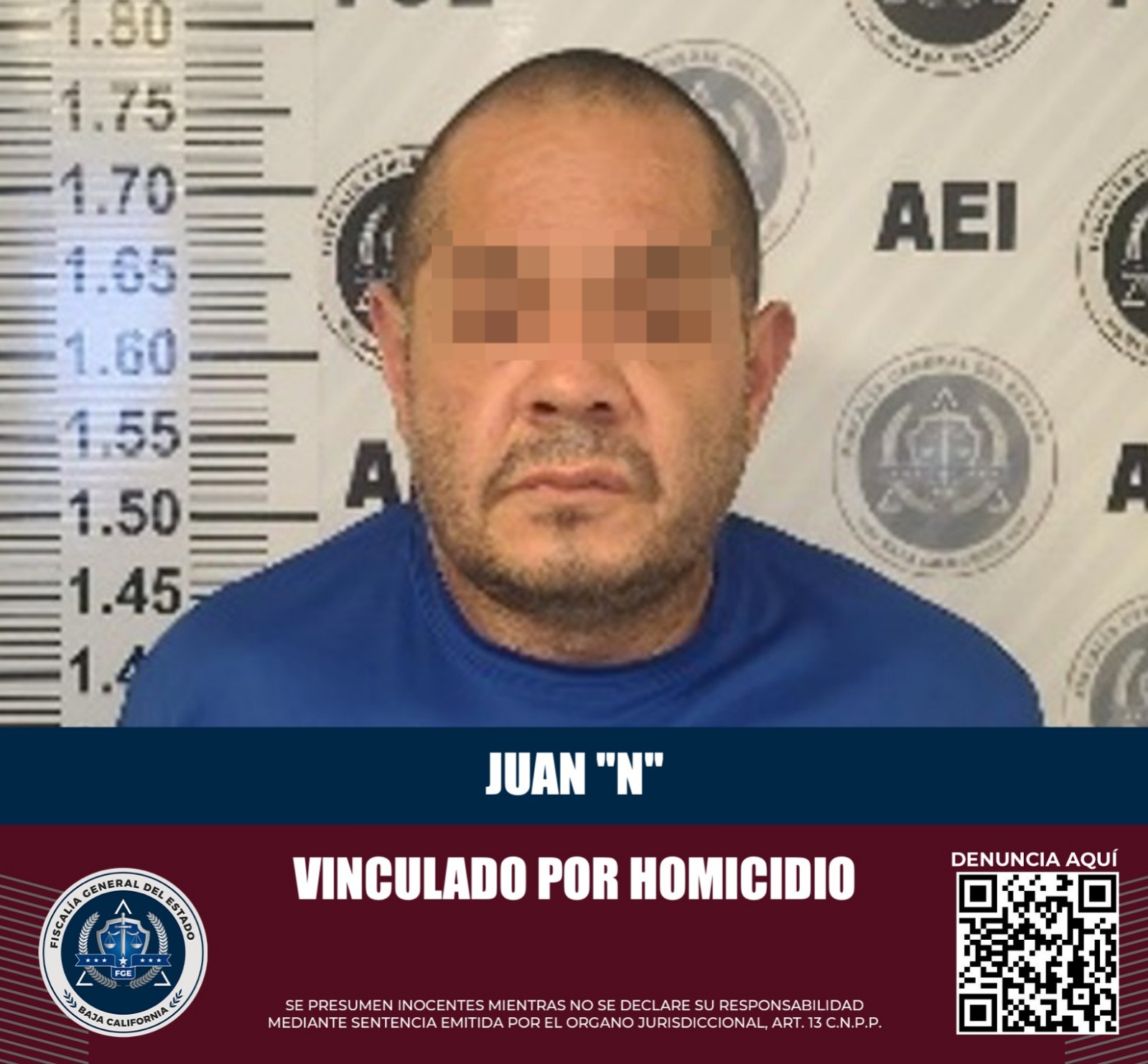 TIJUANA, B.C. La Fiscalía General del Estado obtuvo la vinculación a proceso en contra de Juan "N" por el delito de homicidio calificado.