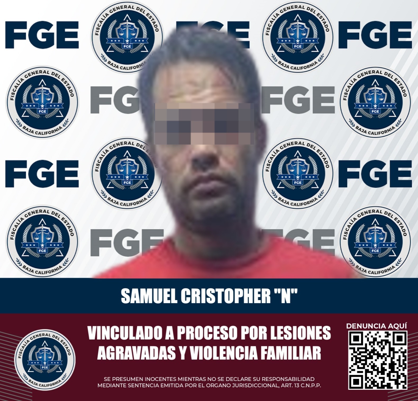 TIJUANA, B.C. La Fiscalía General del Estado de Baja California informó que fue vinculado a proceso penal, Samuel Cristopher “N” quien enfrenta cargos por su presunta responsabilidad en los delitos de lesiones agravadas y violencia familiar.