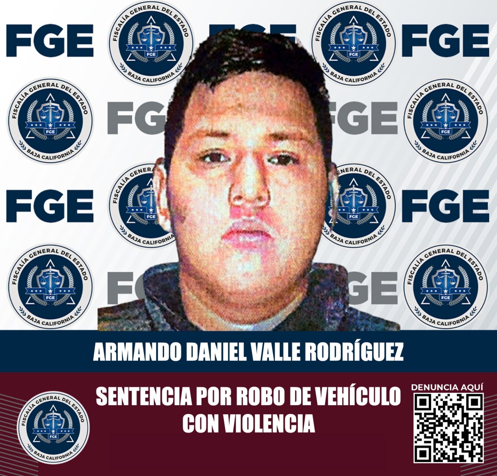 TIJUANA, B.C. Con el respaldo de pruebas, la Fiscalía Regional de Tijuana logró obtener una sentencia para Armando Daniel Valle Rodríguez, penalmente responsable de robo de vehículo ejecutado con violencia.