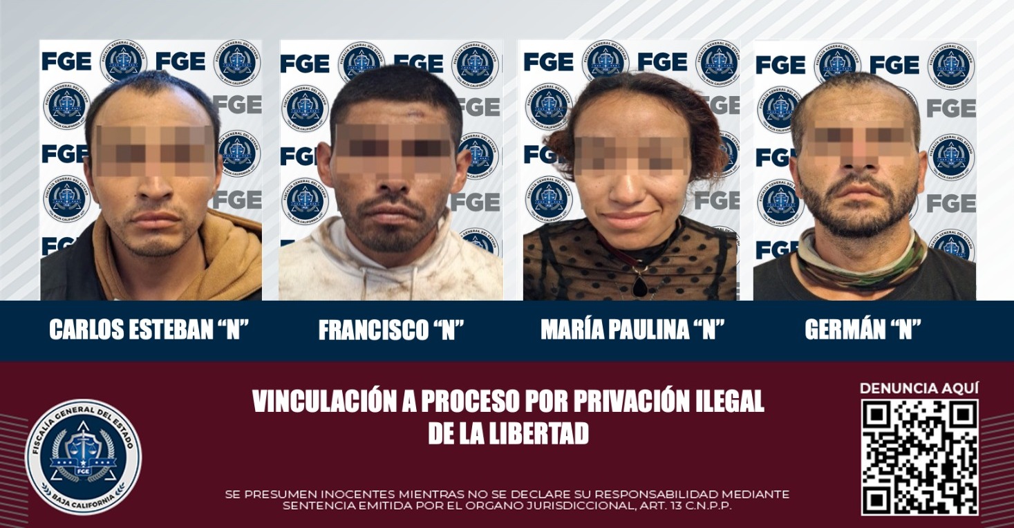 TIJUANA, B.C. La Fiscalía Regional de Tijuana logró, con evidencia clara y datos probatorios sólidos, la vinculación a proceso de tres hombres y una mujer acusados del delito de privación ilegal de la libertad.