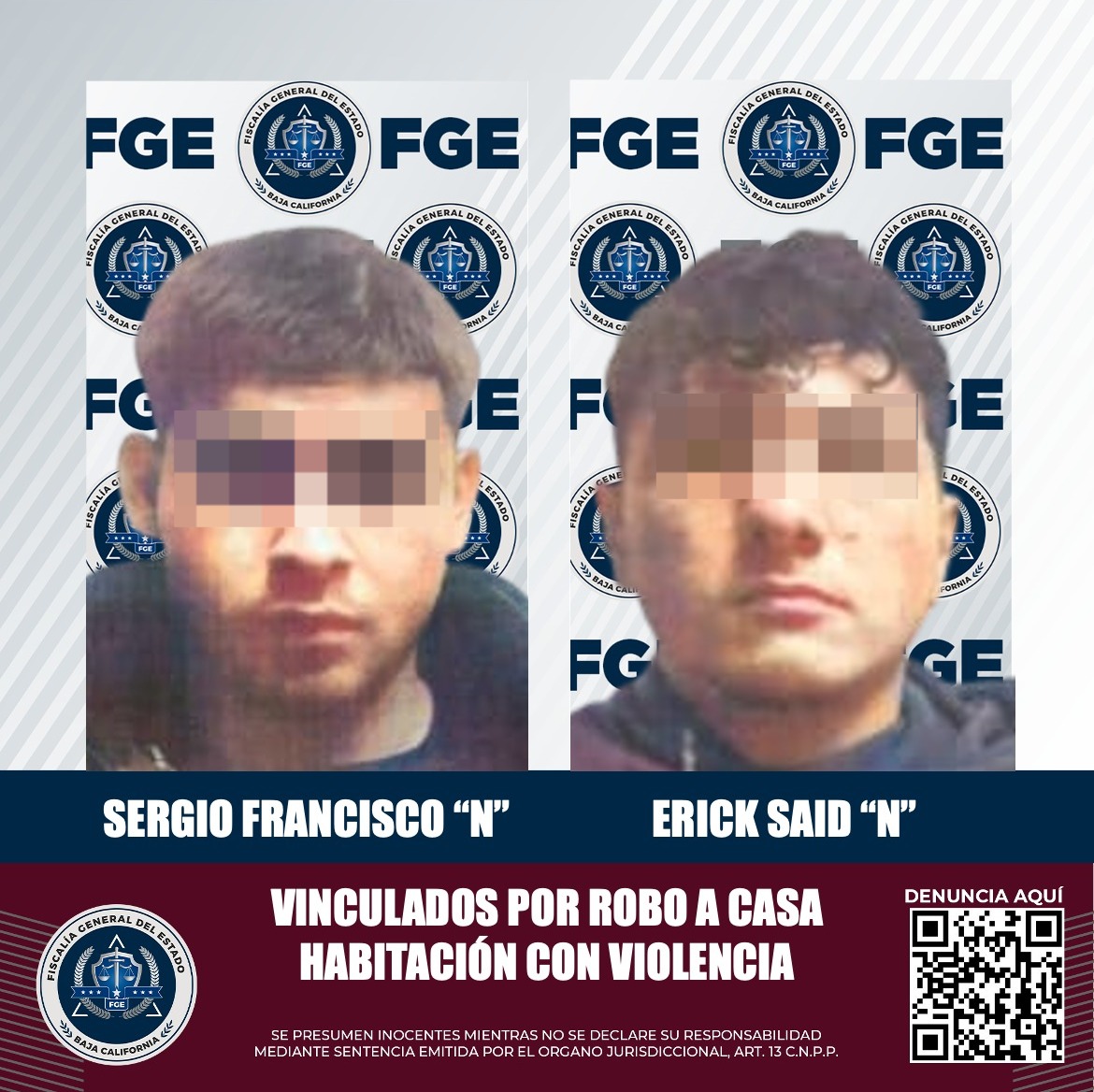 TIJUANA, B.C. La Fiscalía General del Estado, a través de la Unidad de Investigación de Robos zona Mariano Matamoros, informa que, obtuvo la vinculación a proceso de dos hombres por el delito de robo calificado a casa habitación ejecutado con violencia, en la ciudad de Tijuana.