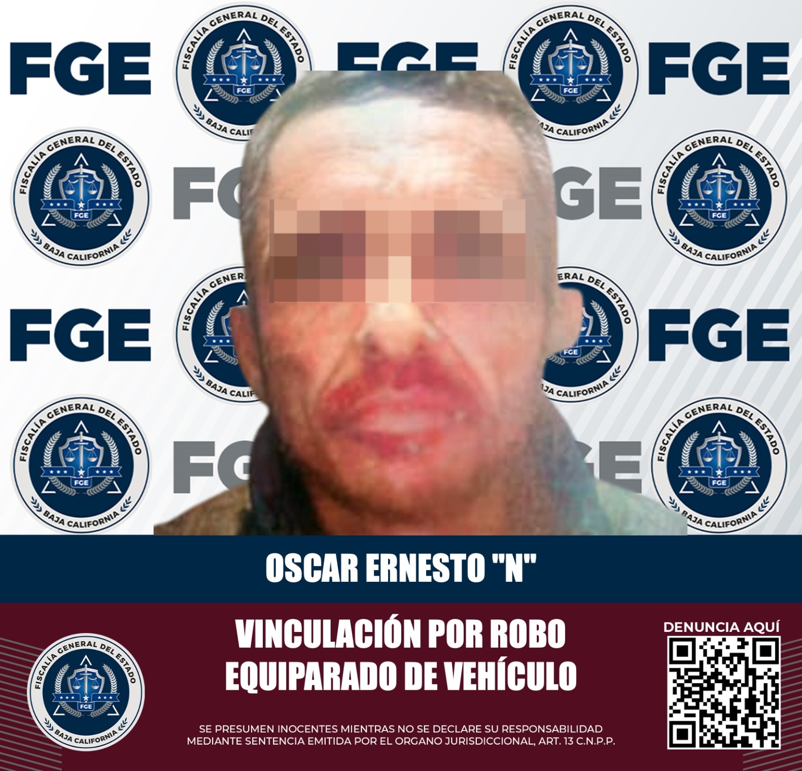 TIJUANA, B.C. Por el delito de robo equiparado de vehículo de motor, en su modalidad de uso de vehículo de motor robado, la Fiscalía Regional de Tijuana, obtuvo la vinculación a proceso de un hombre, a quien se le impuso como medida cautelar prisión preventiva justificada.