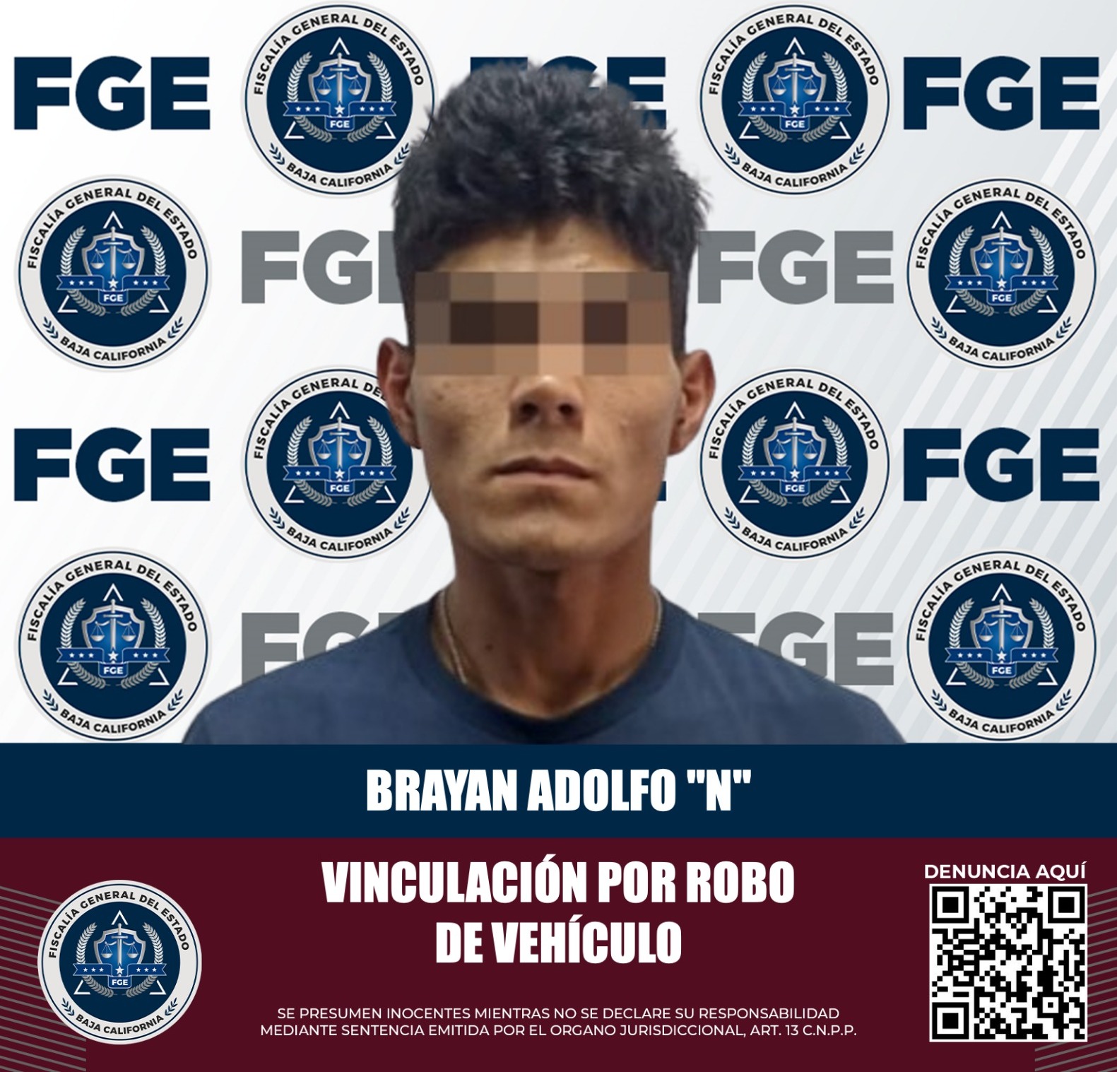 TIJUANA, B.C. La Fiscalía Regional de Tijuana obtuvo la vinculación a proceso de Brayan Adolfo “N” por la posible comisión del delito de robo equiparado de vehículo, en su modalidad de posesión de vehículo de motor.