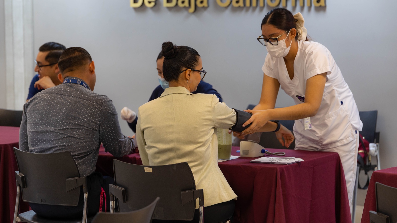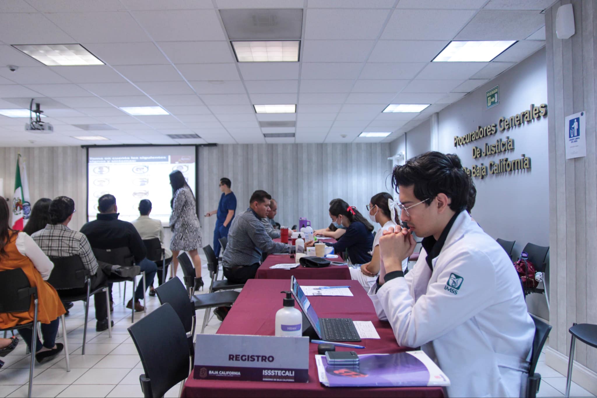 Durante el evento realizado en la sala “Procuradores y Fiscales de Baja California”, el personal médico instaló puntos de revisión oportuna, módulos de detección de hipertensión, diabetes, salud dental, activación física y nutrimental.