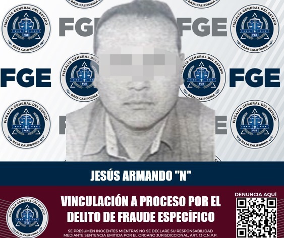 TECATE, B.C. La Fiscalía General del Estado informa que, tras la presentación de pruebas por parte de la agente del Ministerio Público, el Juez de Control ha decidido vincular a proceso a un individuo por el delito de fraude específico.
