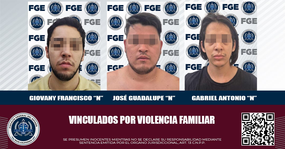 MEXICALI, B.C. Tres hombres acusados de agredir a sus familiares, quedaron bajo proceso penal, mediante los elementos de prueba presentados por la Fiscalía Regional de Mexicali, a través de la Unidad de Investigación con Detenidos Poniente.