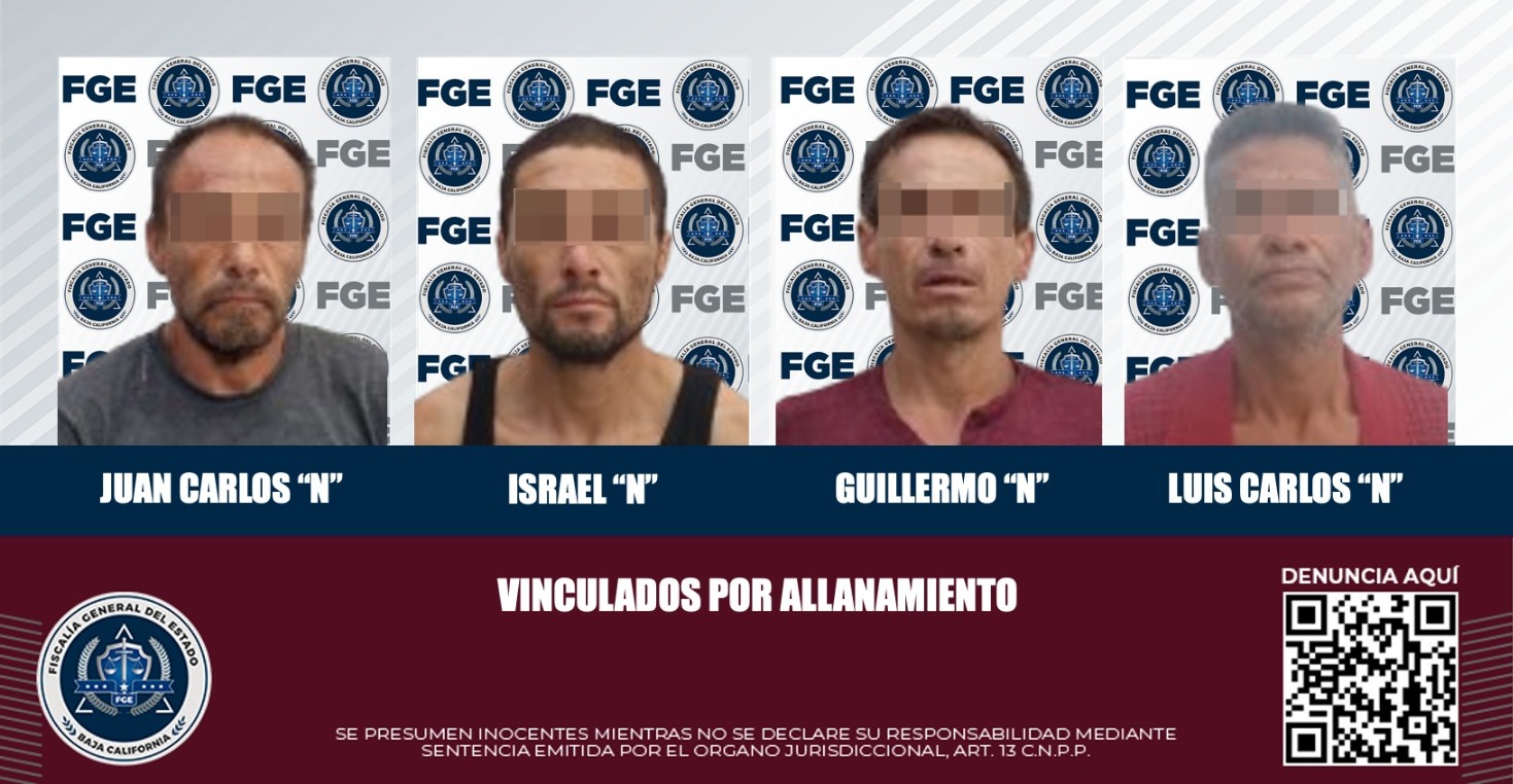 MEXICALI, B.C. Cuatro hombres relacionados en el delito de allanamiento fueron vinculados a proceso con base al trabajo realizado por la Fiscalía Regional de Mexicali, a través de la Unidad de Investigación con Detenidos Poniente.