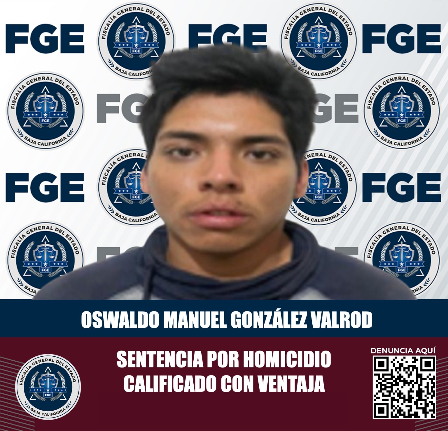 TIJUANA, B.C. La Fiscalía General del Estado, con las pruebas presentadas por el Ministerio Público, logró que se le impusiera una pena de prisión por 20 años a Oswaldo Manuel González Valrod, quien resultó responsable del delito de homicidio calificado con ventaja.