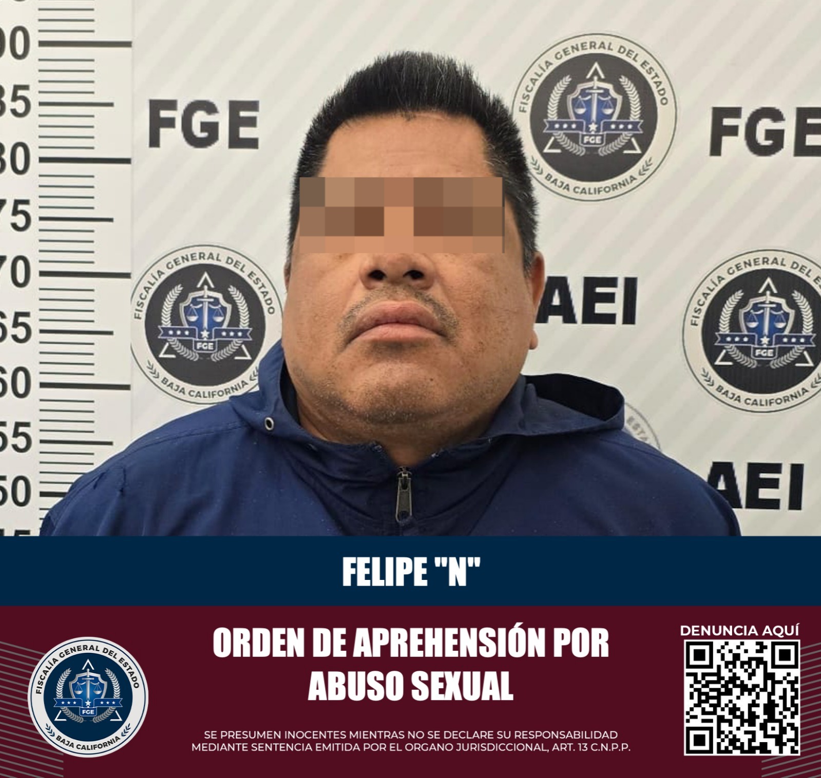 TIJUANA, B.C. La Fiscalía General del Estado, presentó cargos contra Felipe “N”, quien fue puesto a disposición de un Juez de Control, tras ser capturado por agentes estatales de investigación, mediante una orden de aprehensión por el delito de abuso sexual.