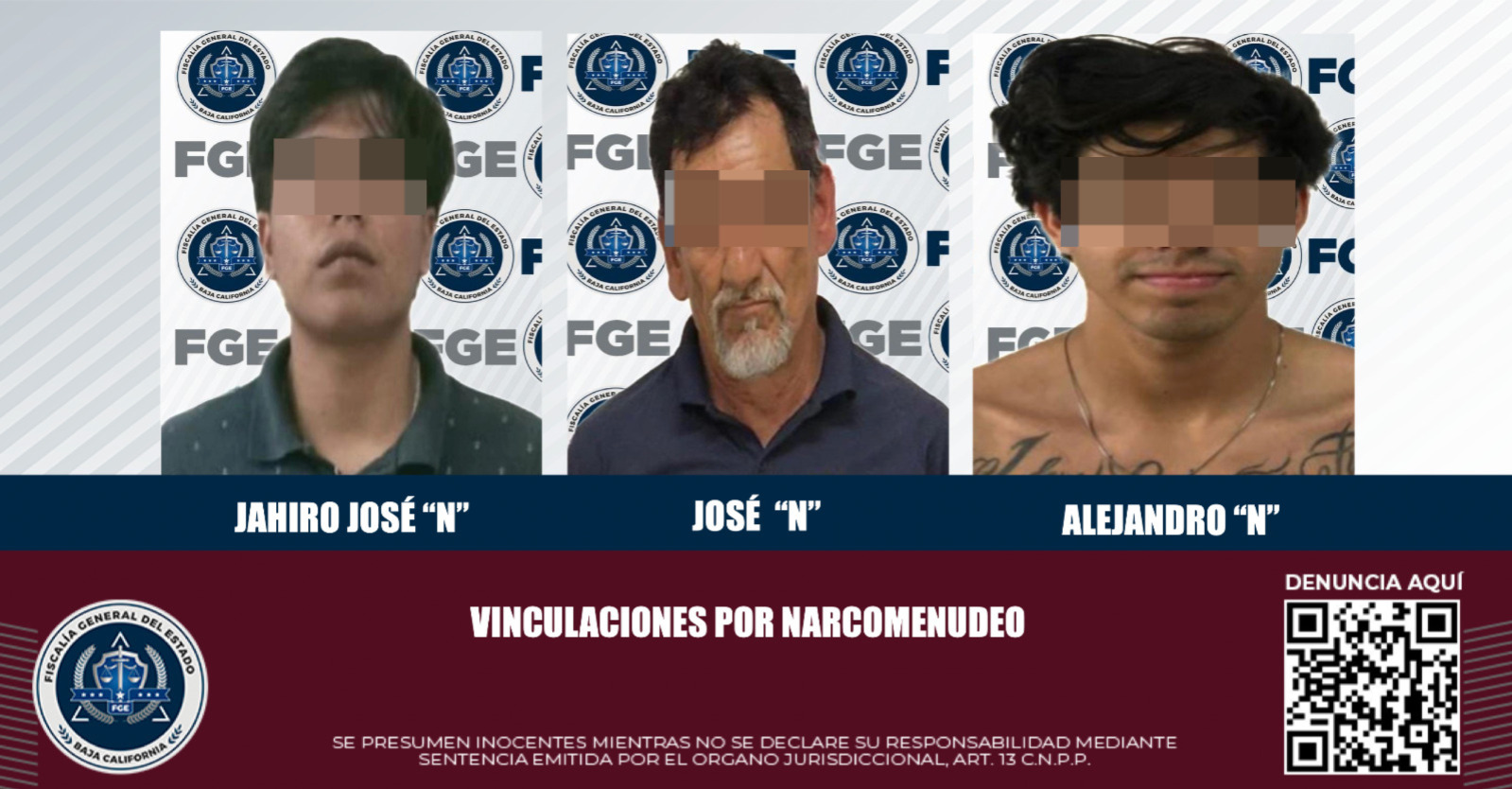 ENSENADA, B.C. La Fiscalía General del Estado, a través de la Fiscalía Especializada en Narcomenudeo, logró la vinculación a proceso de tres hombres detenidos en operativos recientes, presuntamente implicados en delitos contra la salud.