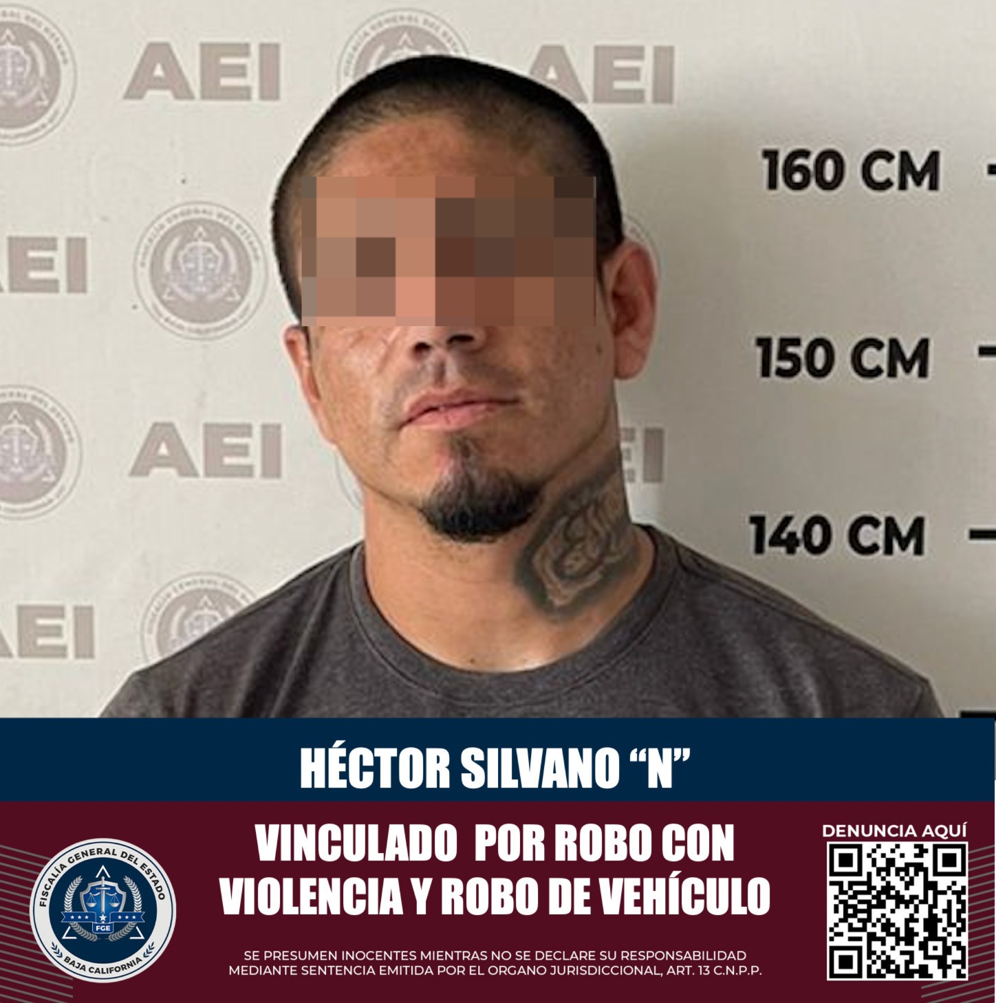 ENSENADA, B.C. La Fiscalía Regional de Ensenada, gracias a una efectiva investigación, logró vincular a proceso a Héctor Silvano “N”, considerado objetivo prioritario en relación con un caso de robo violento perpetrado contra un conductor de DiDi el 23 de junio de 2022.