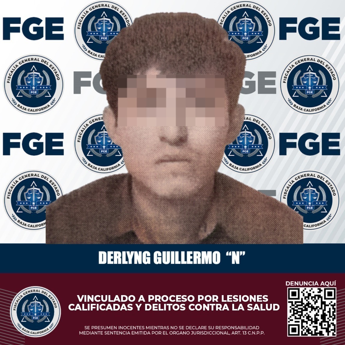 TECATE, B.C. La Fiscalía General del Estado a través de la Unidad de Investigación de Delitos con Detenido de la Fiscalía Regional de Tecate, cumplimentó una orden de aprehensión contra Derlyng Guillermo "N", por los delitos de lesiones calificadas y contra la salud en la modalidad de narcomenudeo, por posesión de metanfetamina y marihuana, con lo cual se reapertura el proceso en su contra y se define vincularlo a proceso penal.