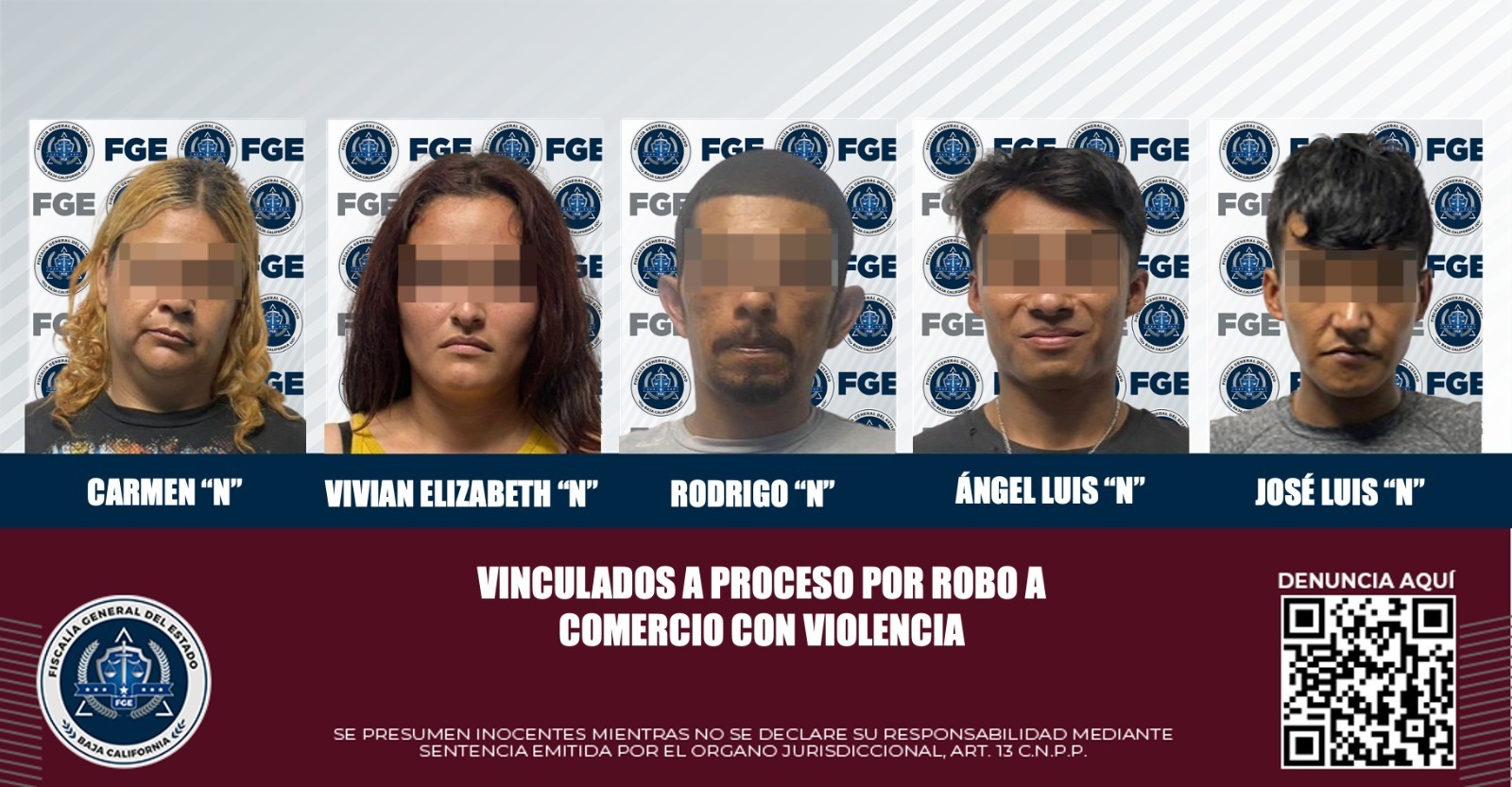 TIJUANA, B.C. La Fiscalía General del Estado logró la vinculación a proceso penal de cinco imputados por el delito de robo calificado a comercio con violencia.