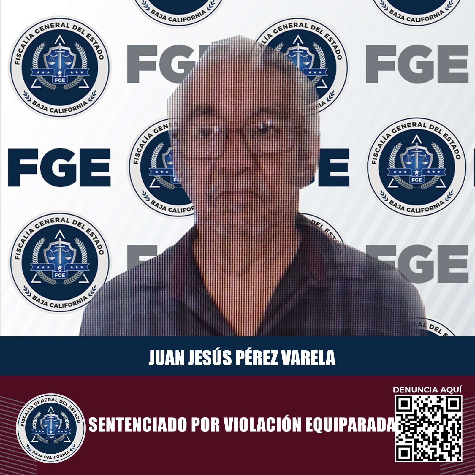 MEXICALI, B.C. La Fiscalía General del Estado (FGE), en el firme ejercicio de búsqueda de la justicia, para no dejar impunes actos de violencia en contra de las mujeres, niñas, niños y personas vulnerables, obtuvo una sentencia de 14 años y 8 meses de prisión para un hombre, quien resulto penalmente responsable de los delitos de violación equipada y violación.