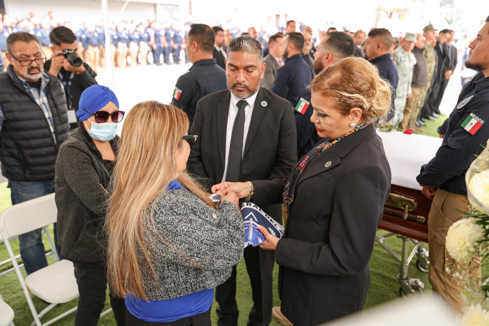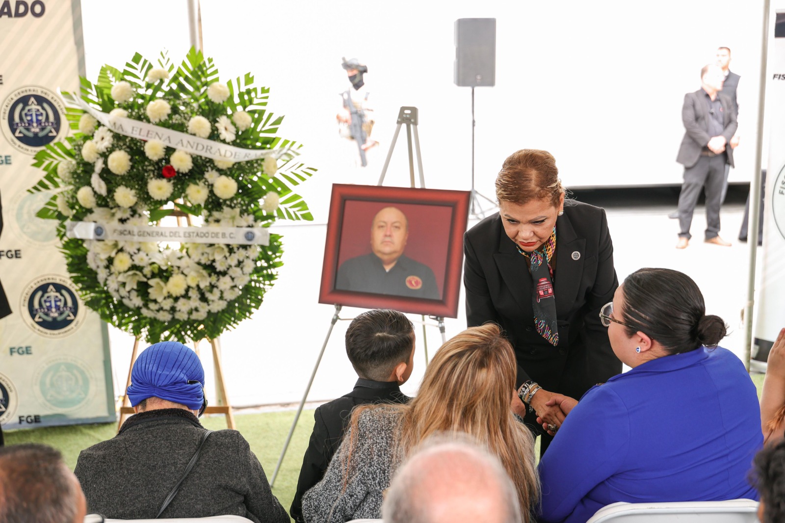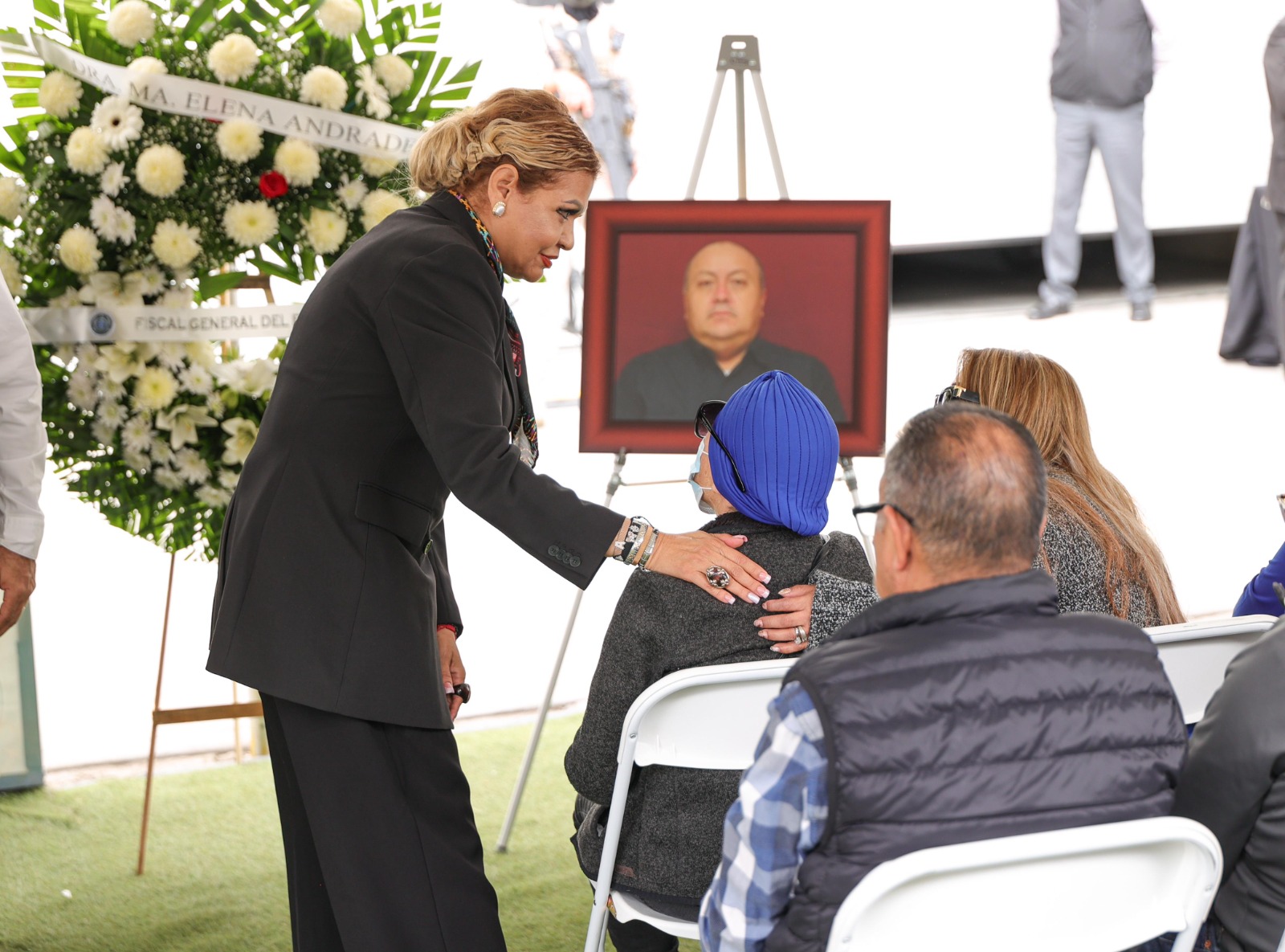 La titular de la institución, externó sus más sinceras condolencias a la familia del comandante, quienes estuvieron presentes para honrar la labor del agente. Durante la ceremonia, la Fiscal General, recordó una semblanza del comandante y compartió su amplia experiencia, pues contaba con una trayectoria de más de 30 años de servicio.