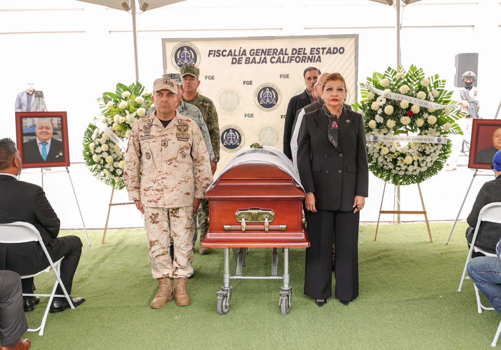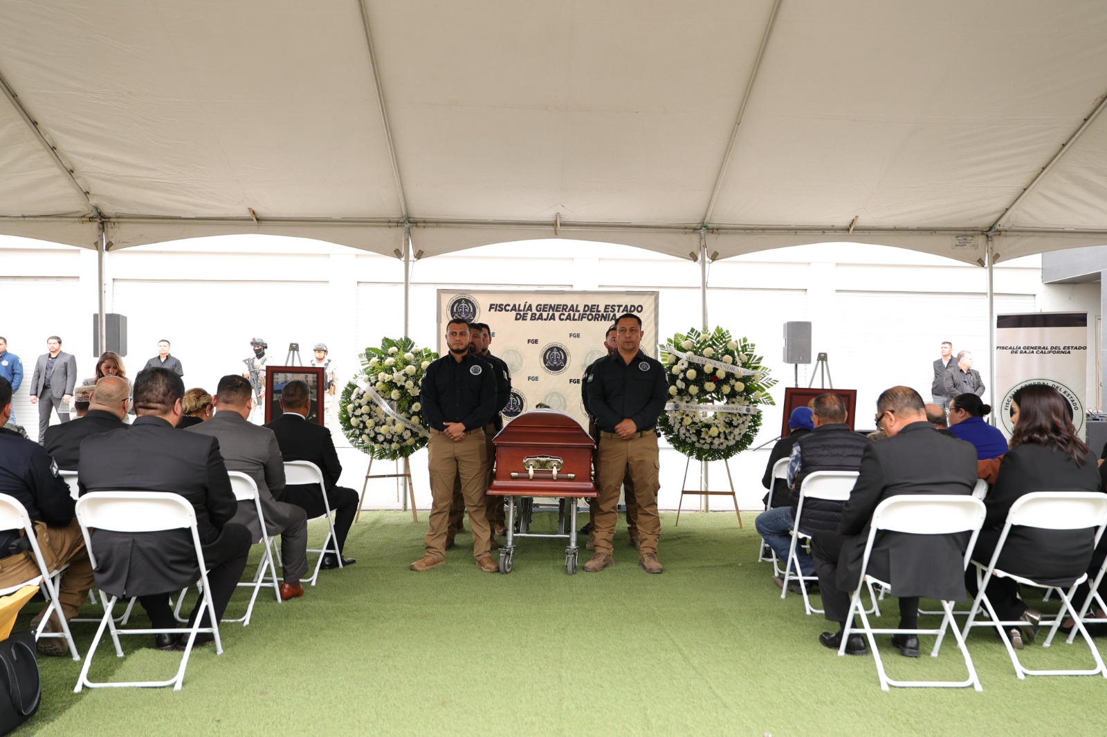TIJUANA, B.C. La Fiscalía General del Estado, a cargo de Ma. Elena Andrade Ramírez, llevó a cabo una ceremonia de honor para Gerardo René González Zamorano, Comandante Operativo de Tecate, quien lamentablemente perdió la vida el día lunes 14 de octubre de 2024, en un ataque directo, cuando se encontraba en un momento de vulnerabilidad y fuera de sus labores de servicio.
