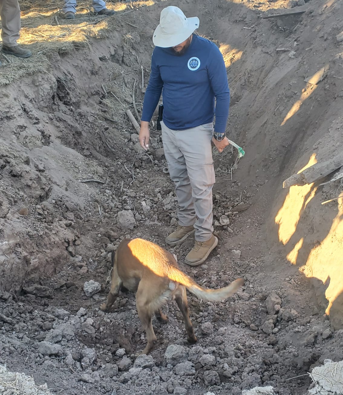 También participó la Unidad K9 de la FGE con el binomio Rooster, especializado en búsqueda y recuperación de cadáveres y restos óseos.