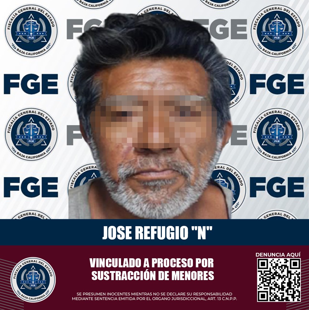 TECATE, B.C. La Fiscalía Regional de Tecate dio a conocer que, en audiencia realizada el día 7 de octubre del presente año, José Refugio “N” fue vinculado a proceso por los delitos de sustracción de menores en grado de tentativa y allanamiento de morada. Además, el juez de control le impuso la medida cautelar de prisión preventiva.