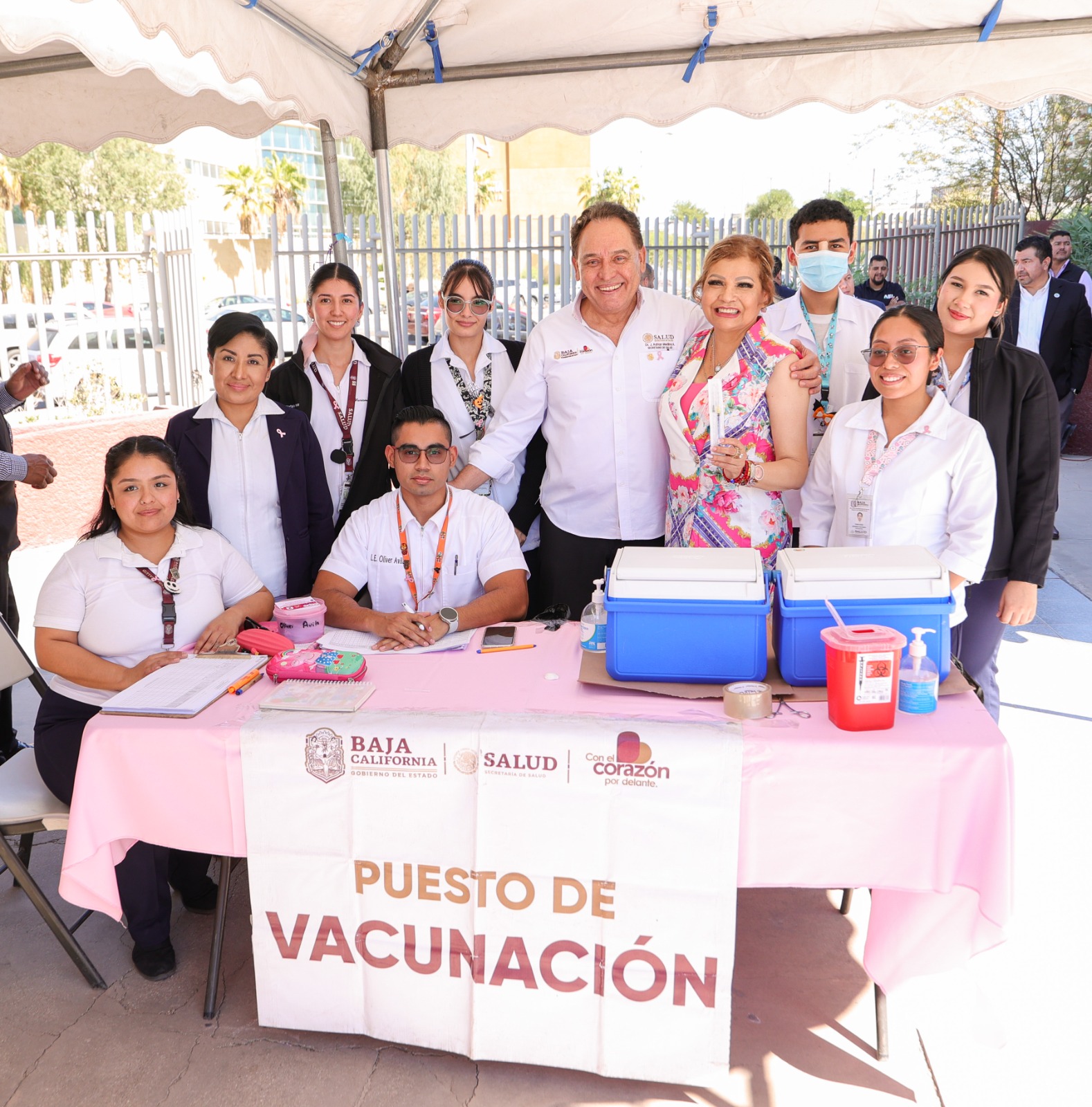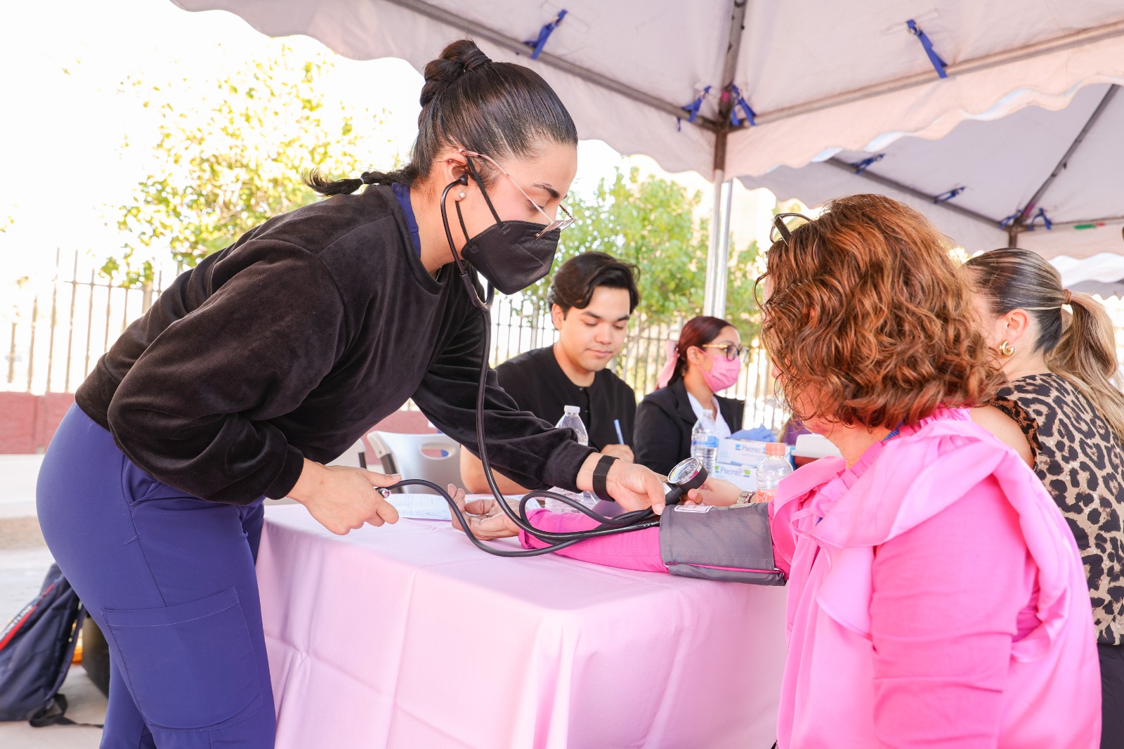 En la Macro Jornada de Salud, personal del Instituto de Seguridad y Servicios Sociales de los Trabajadores del Gobierno y Municipios del Estado de Baja California (ISSSTECALI), revisaron presión arterial y glucosa, revisión nutricional y dental, además la aplicación de vacunas contra la influenza, covid y neumococo.