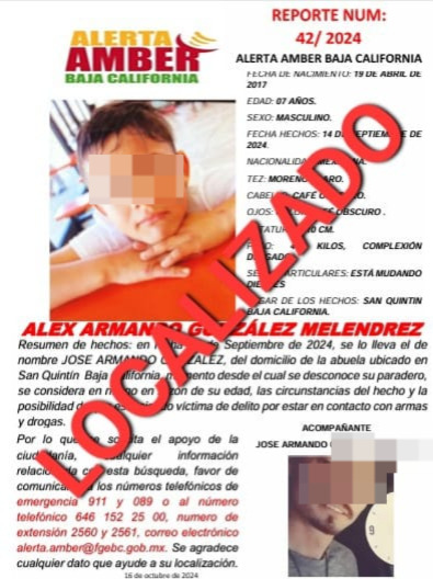 SAN QUINTÍN, B.C. En una operación contundente, la Fiscalía General del Estado logró localizar y poner a salvo a un menor de 7 años que había sido denunciado como sustraído en San Quintín.