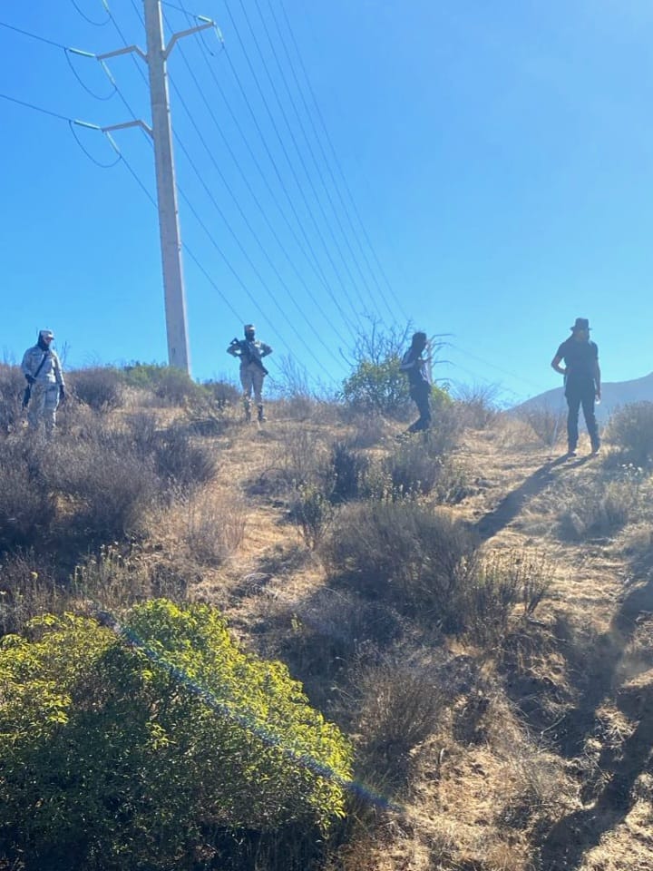 En este sitio, con el apoyo de los binomios caninos Jagger y Mamba, se inspeccionaron arroyos, veredas y las faldas de los cerros, lo que permitió localizar dos fosas con restos humanos a una distancia de 50 metros una de la otra.