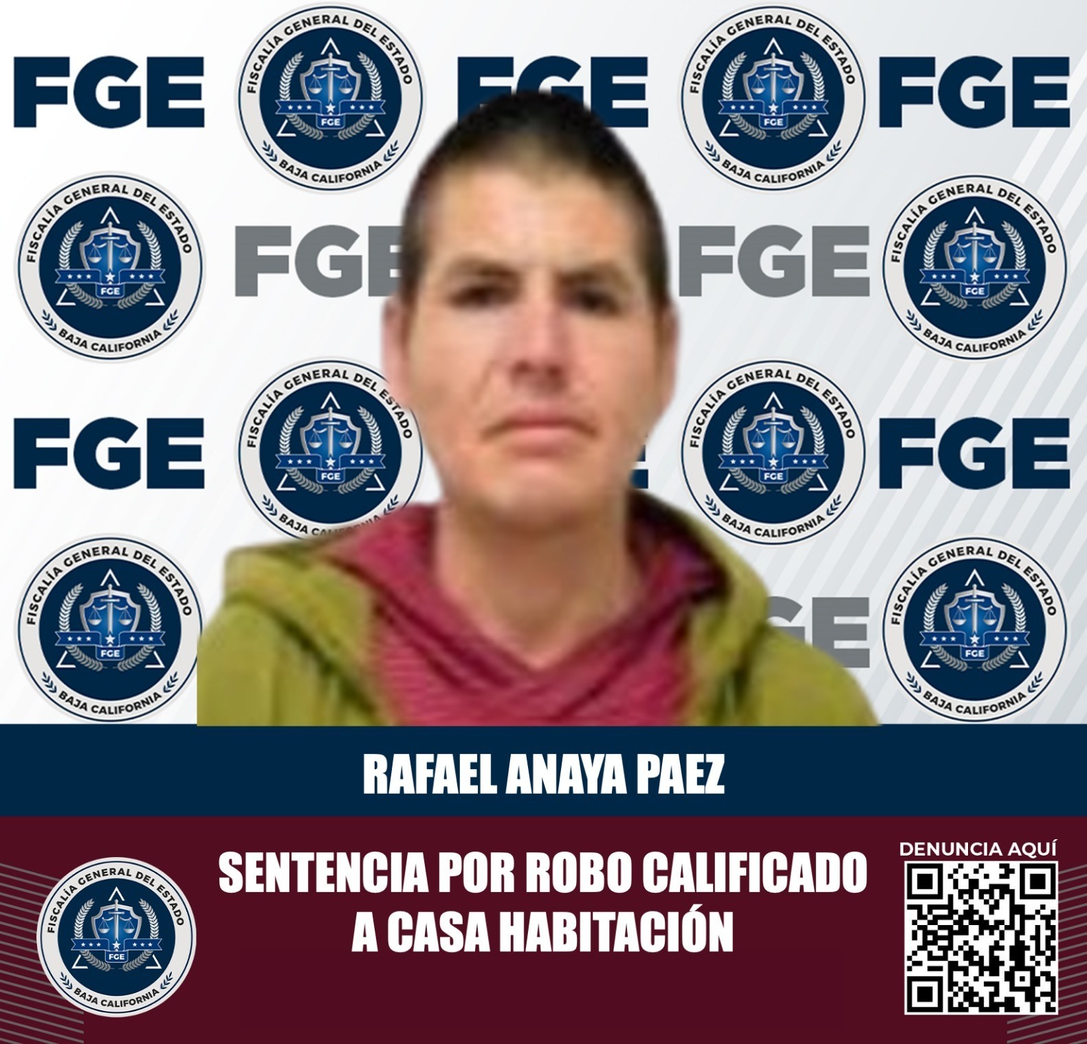 TECATE B.C. La Fiscalía Regional de Tecate acreditó la responsabilidad de Rafael Anaya Páez, un hombre acusado del delito de robo calificado a casa habitación, ocurrido en julio de 2021.
