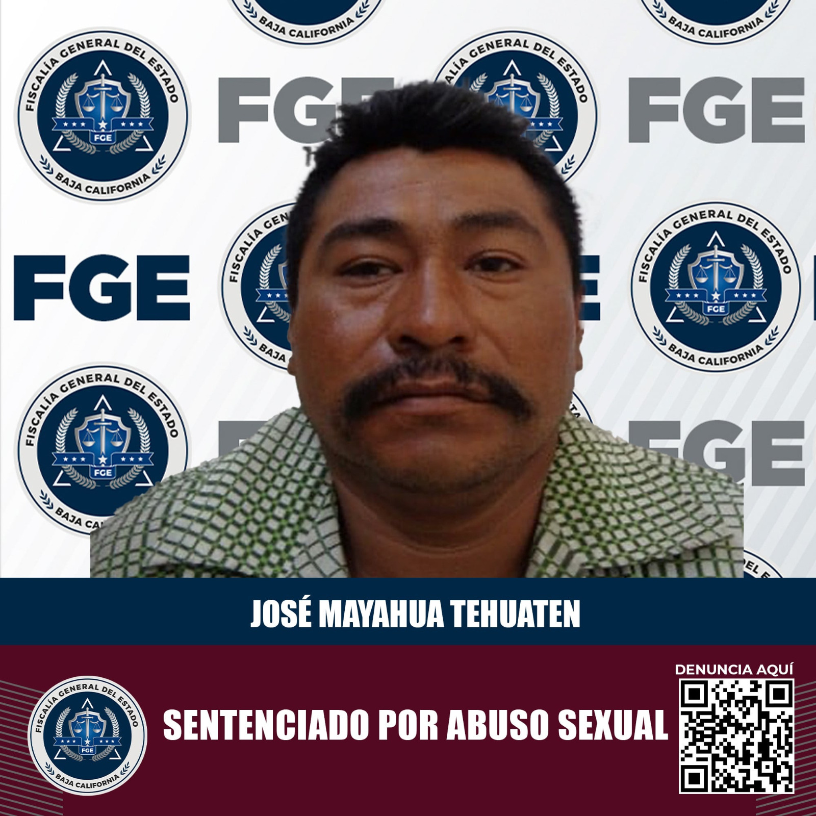 MEXICALI, B.C. Como parte del compromiso de la Fiscalía General del Estado de presentar carpetas de investigación sólidas, se logró un fallo condenatorio en contra de José Mayahua Tehuaten, acusado del delito de abuso sexual a menor de 14 años.